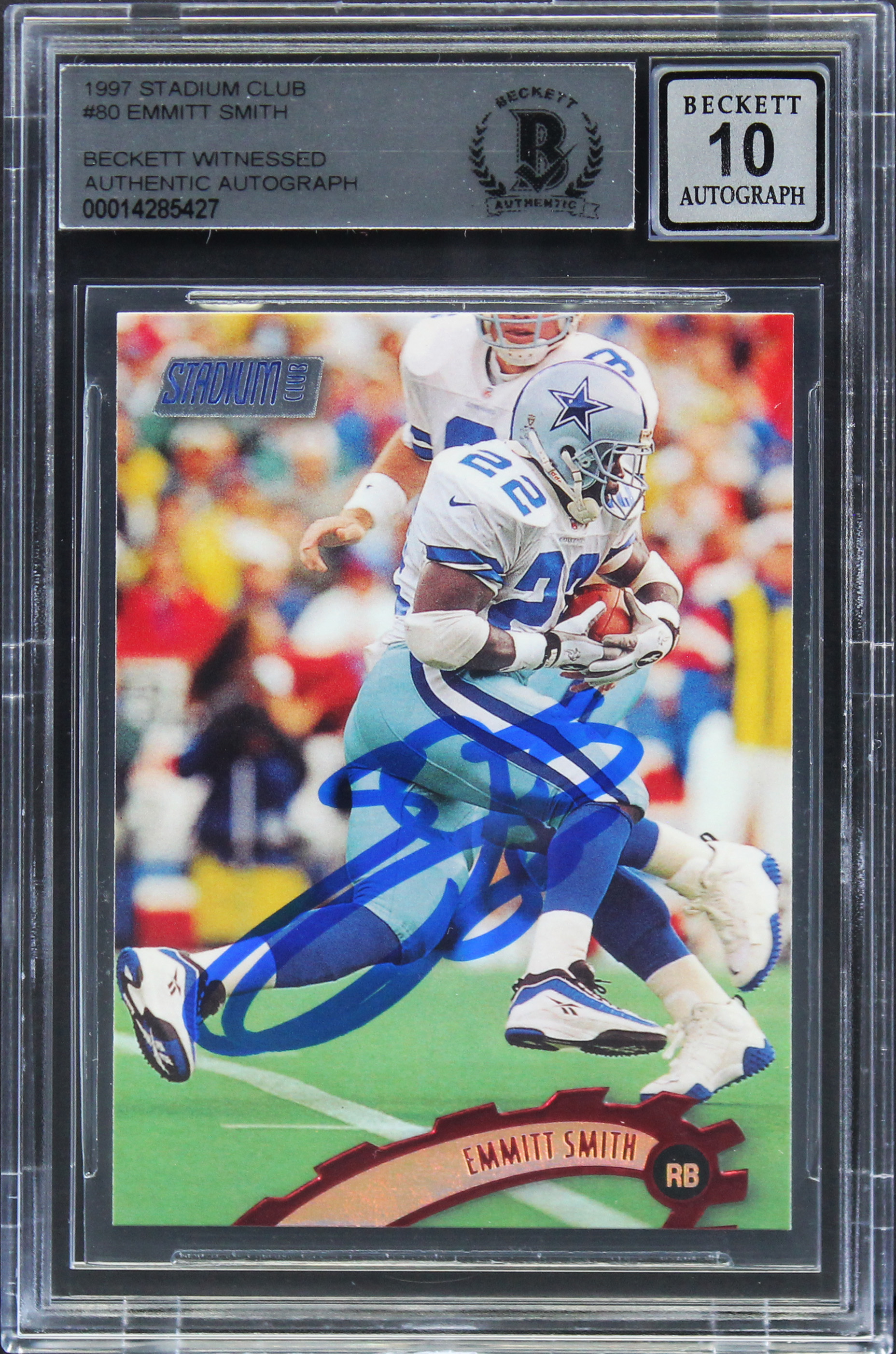 Cowboys Emmitt Smith Signed 1997 Stadium Club #80 Card Auto 10! BAS Slabbed