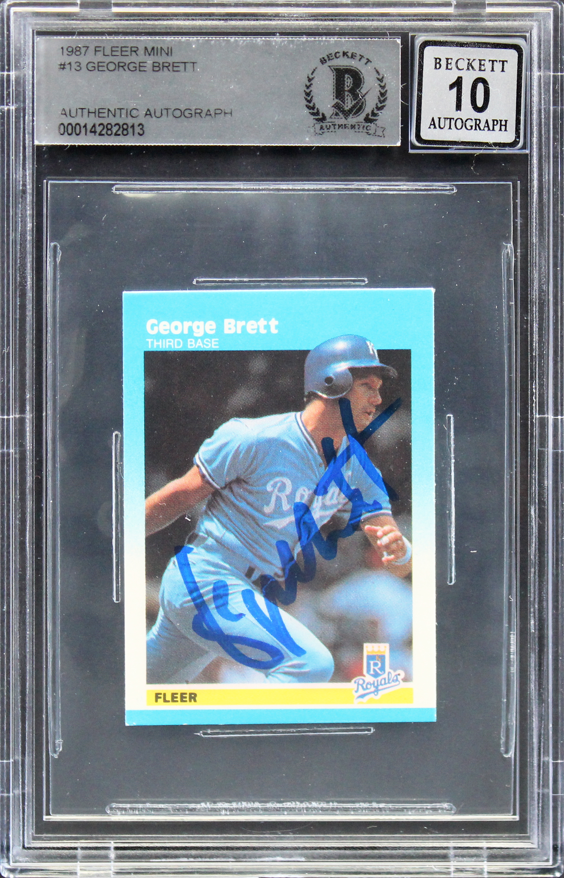 Royals George Brett Authentic Signed 1987 Fleer Mini #13 Card Auto 10! BAS Slab