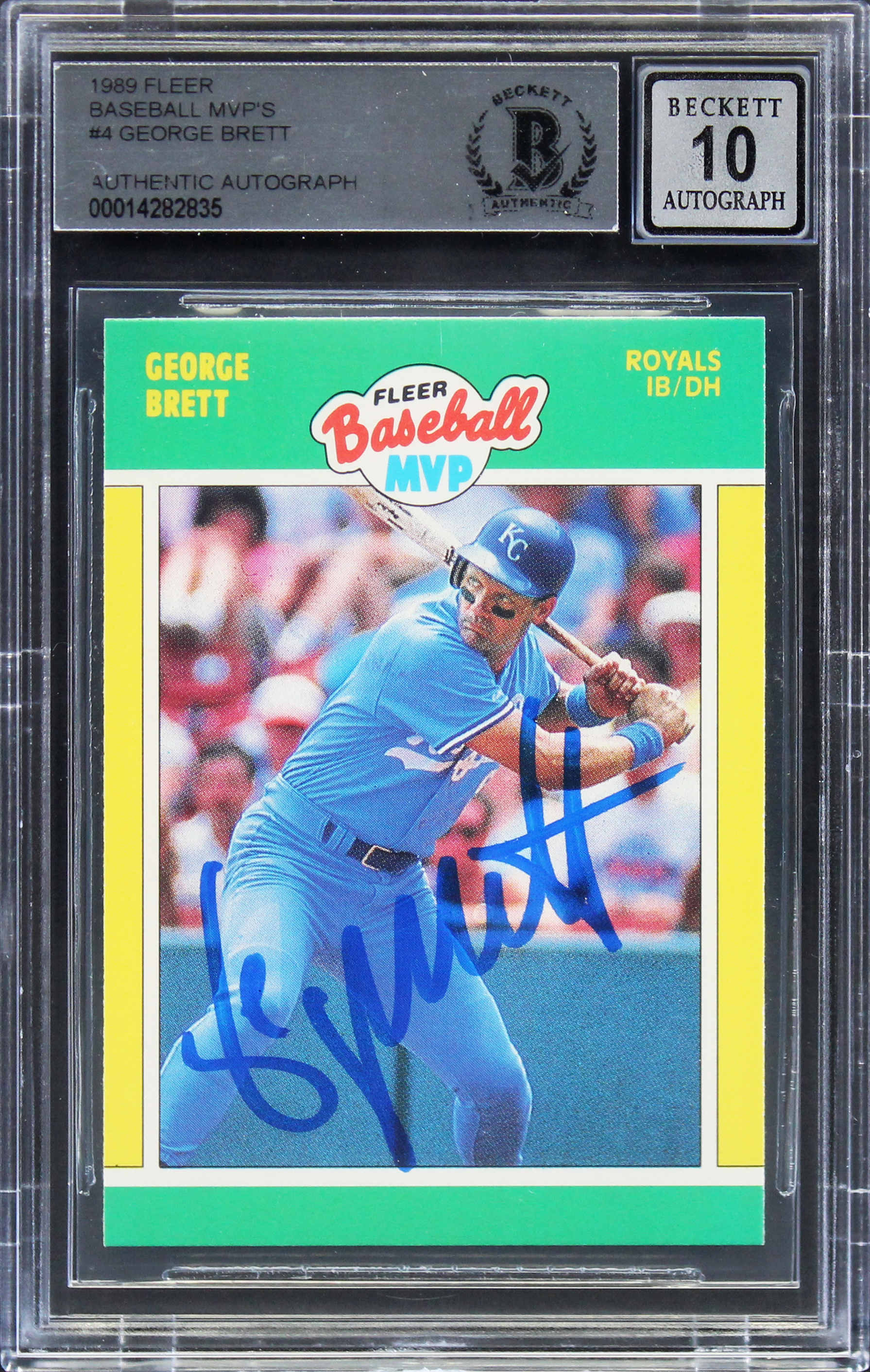 Royals George Brett Signed 1989 Fleer Baseball MVP's #4 Card Auto 10 BAS Slabbed