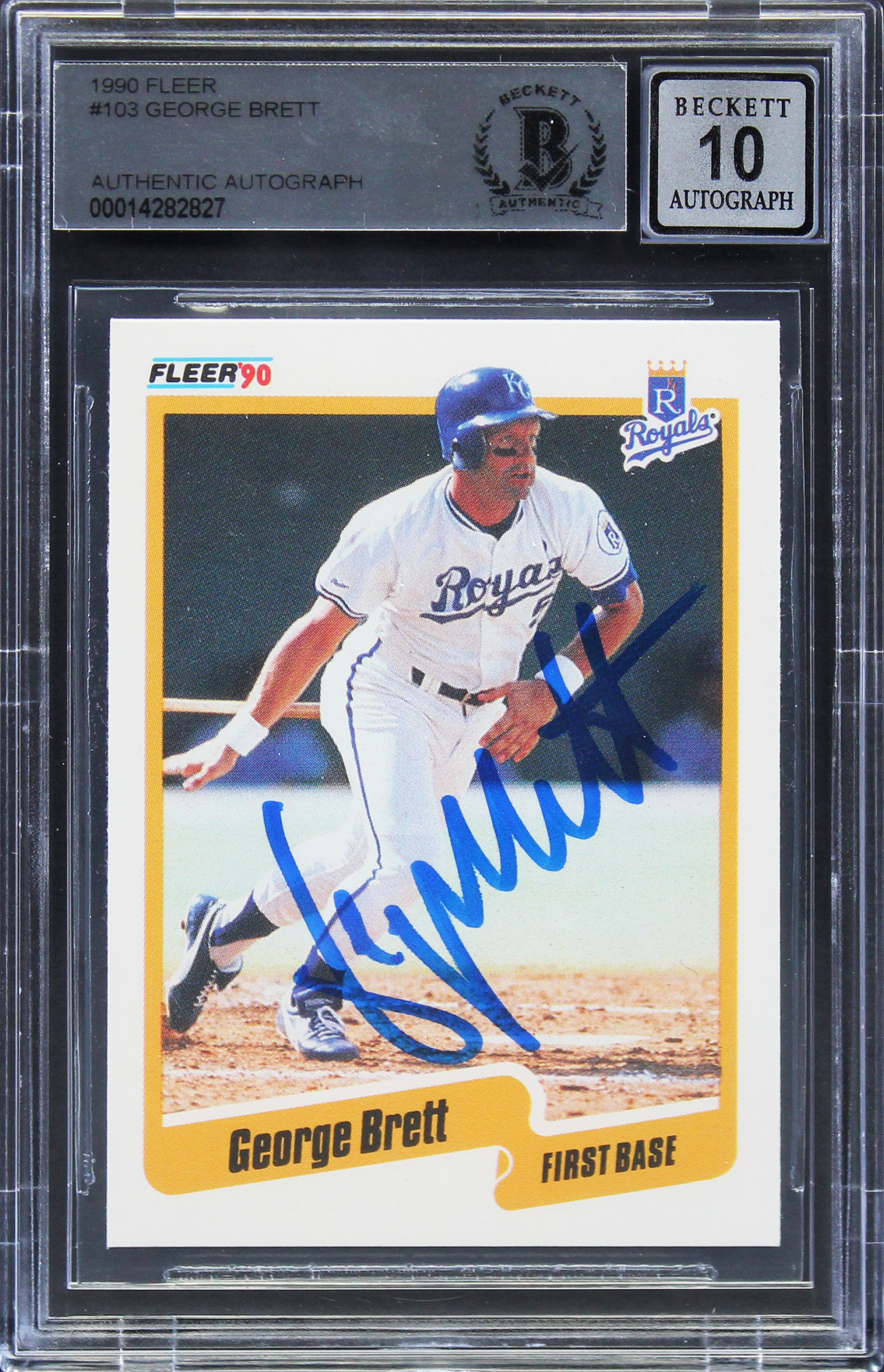 Royals George Brett Authentic Signed 1990 Fleer #103 Card Auto 10! BAS Slabbed