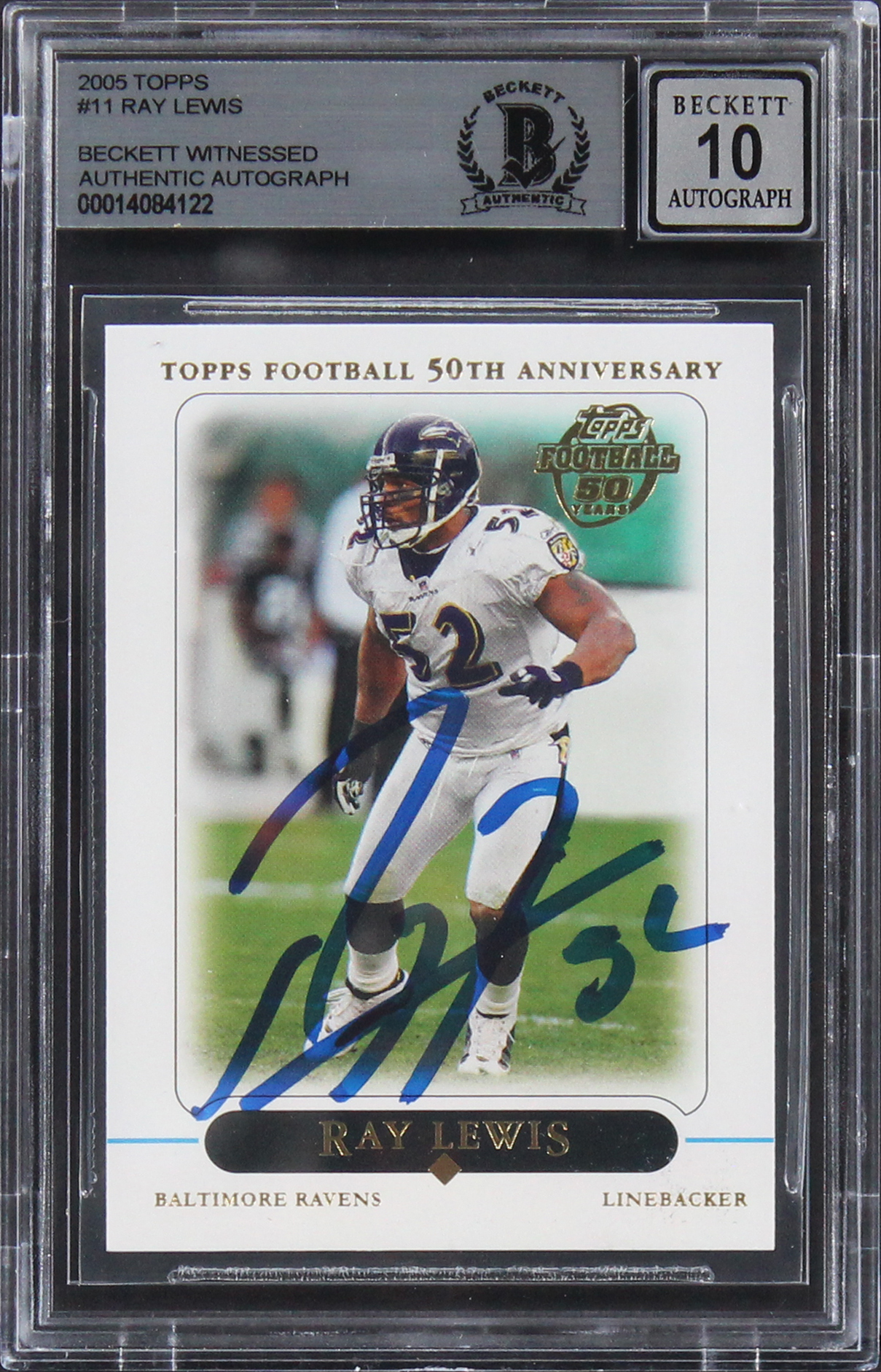 Ravens Ray Lewis Signed 2005 Topps #11 Card Auto Graded Gem Mint 10! BAS Slabbed