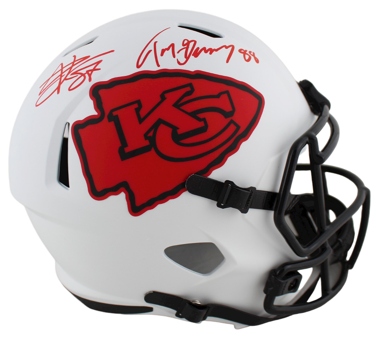 Tony Gonzalez & Travis Kelce Signed Lunar Full Size Speed Rep Helmet BAS Witness