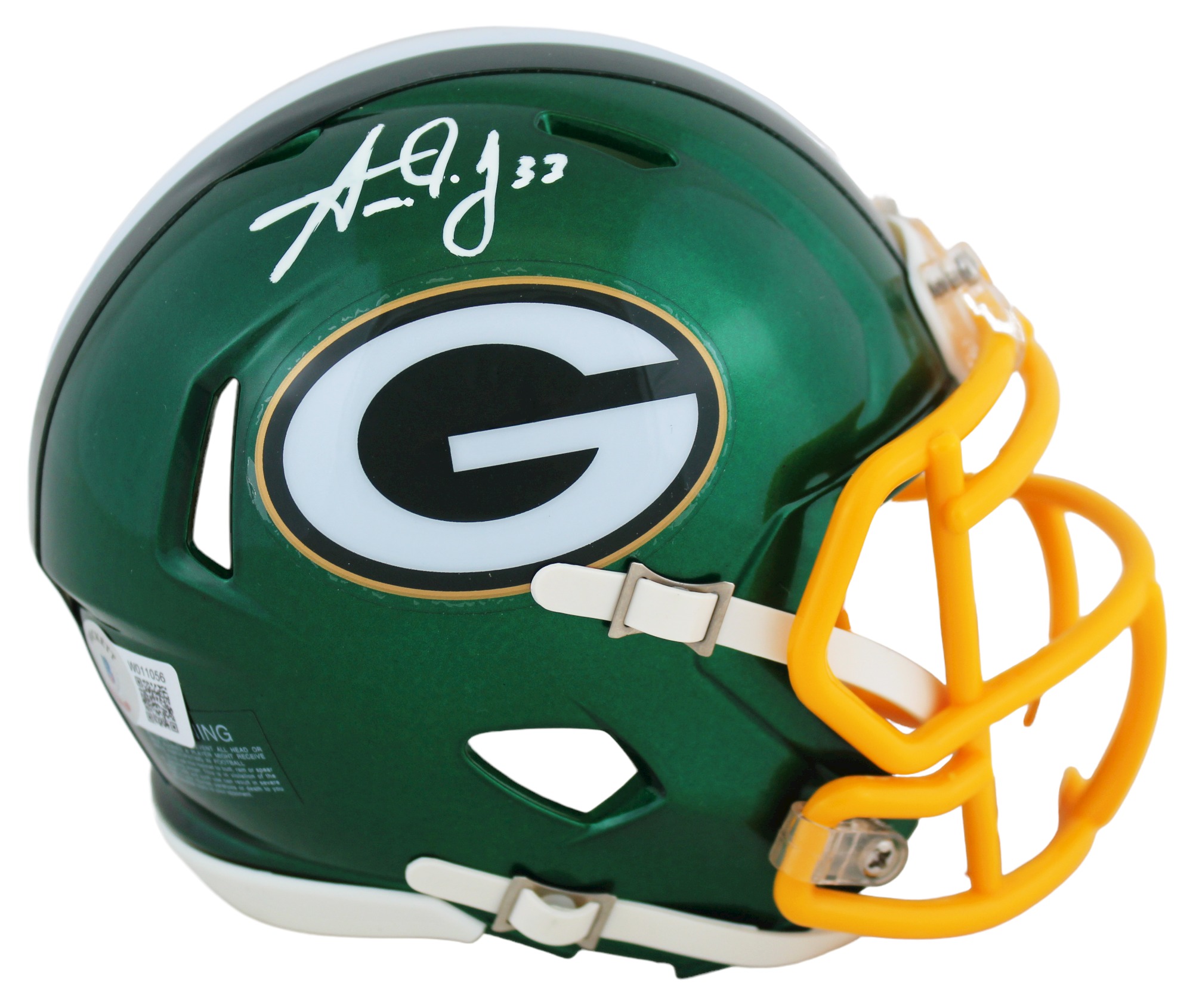Packers Aaron Jones Authentic Signed Flash Speed Mini Helmet BAS Witnessed