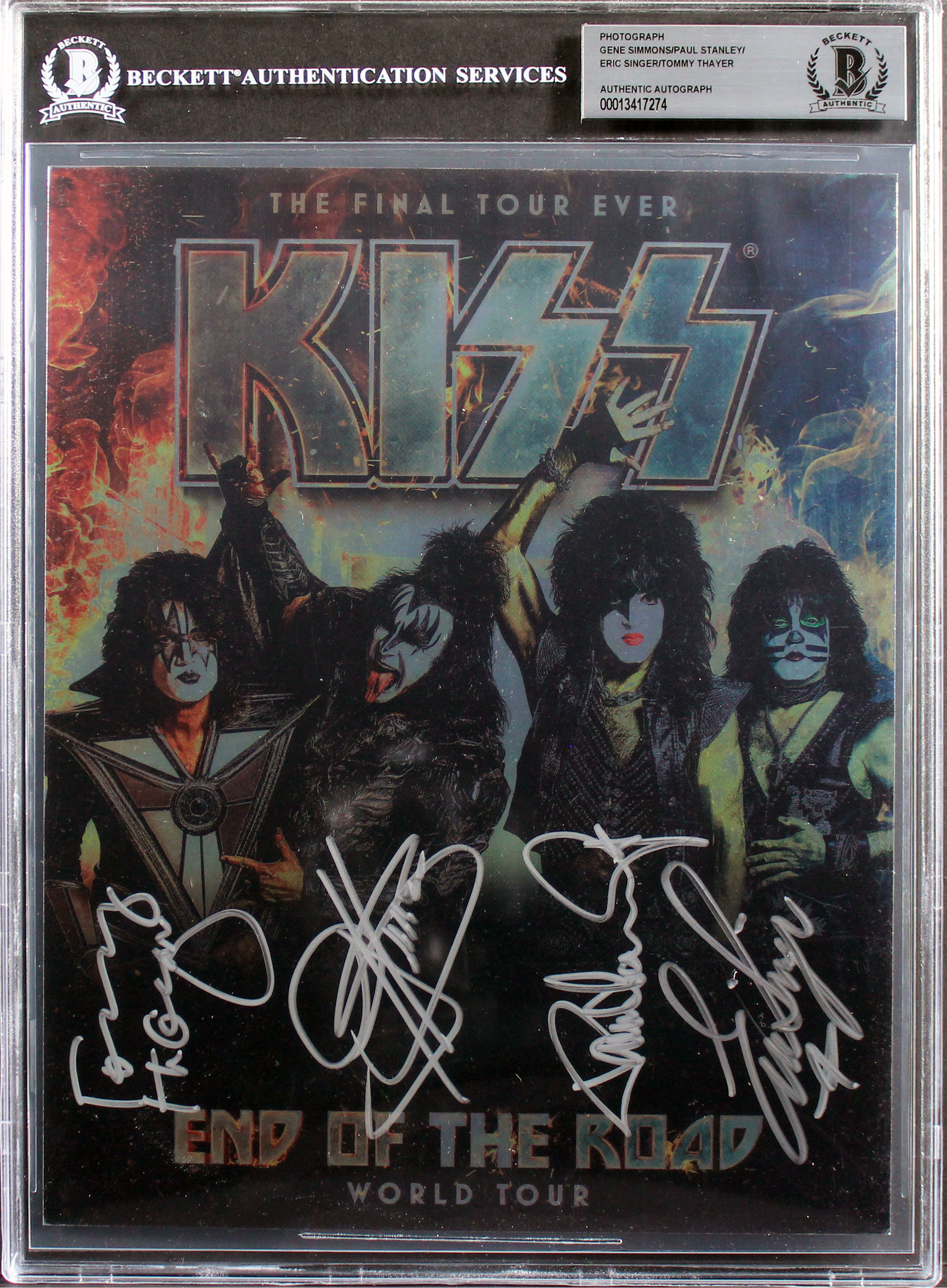 KISS (4) Simmons, Stanley, Singer & Thayer Signed 8x10 Photo BAS Slabbed