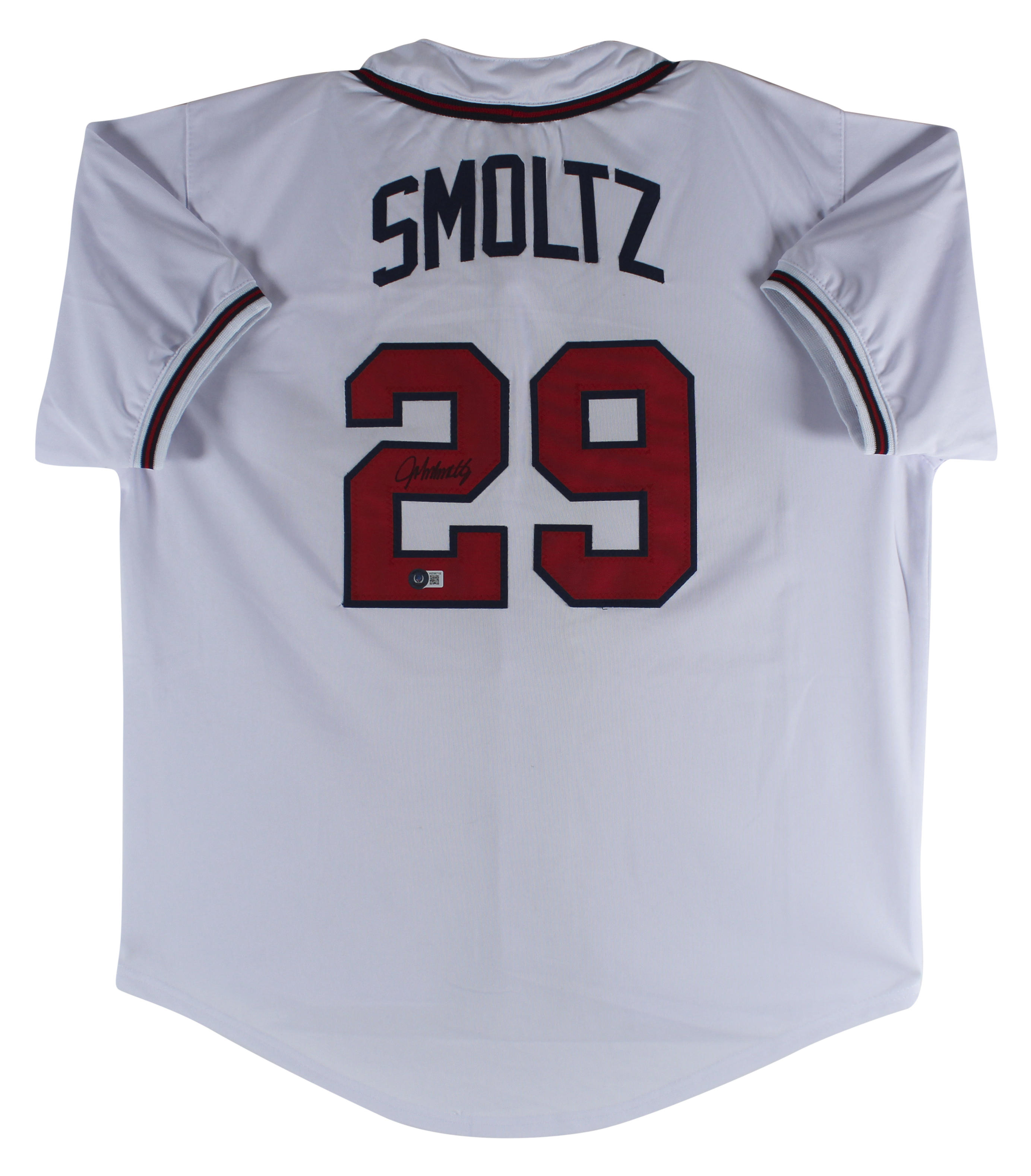 John Smoltz Authentic Signed White Pro Style Jersey Autographed BAS Witnessed