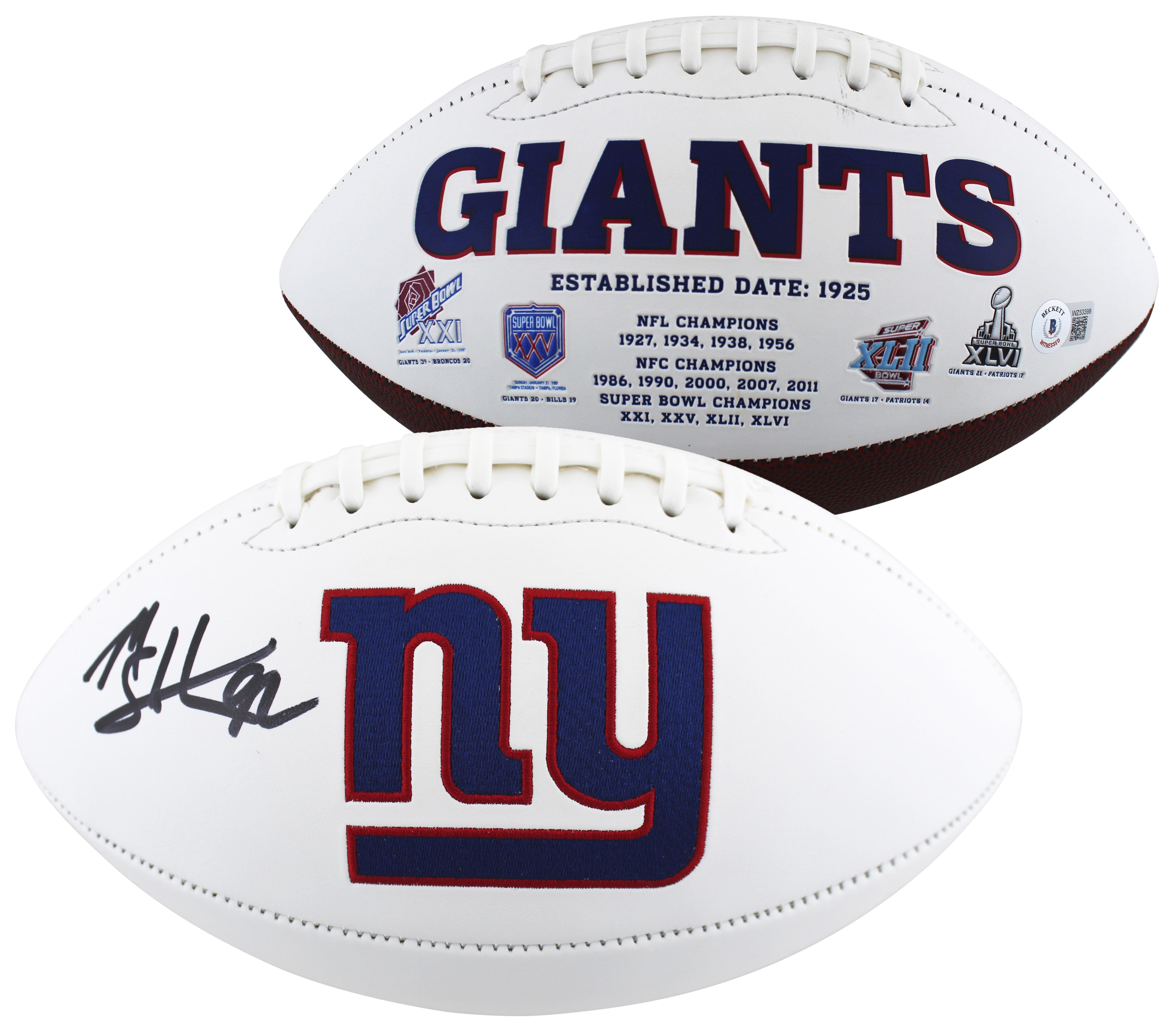 Giants Michael Strahan Authentic Signed White Panel Logo Football BAS Witnessed
