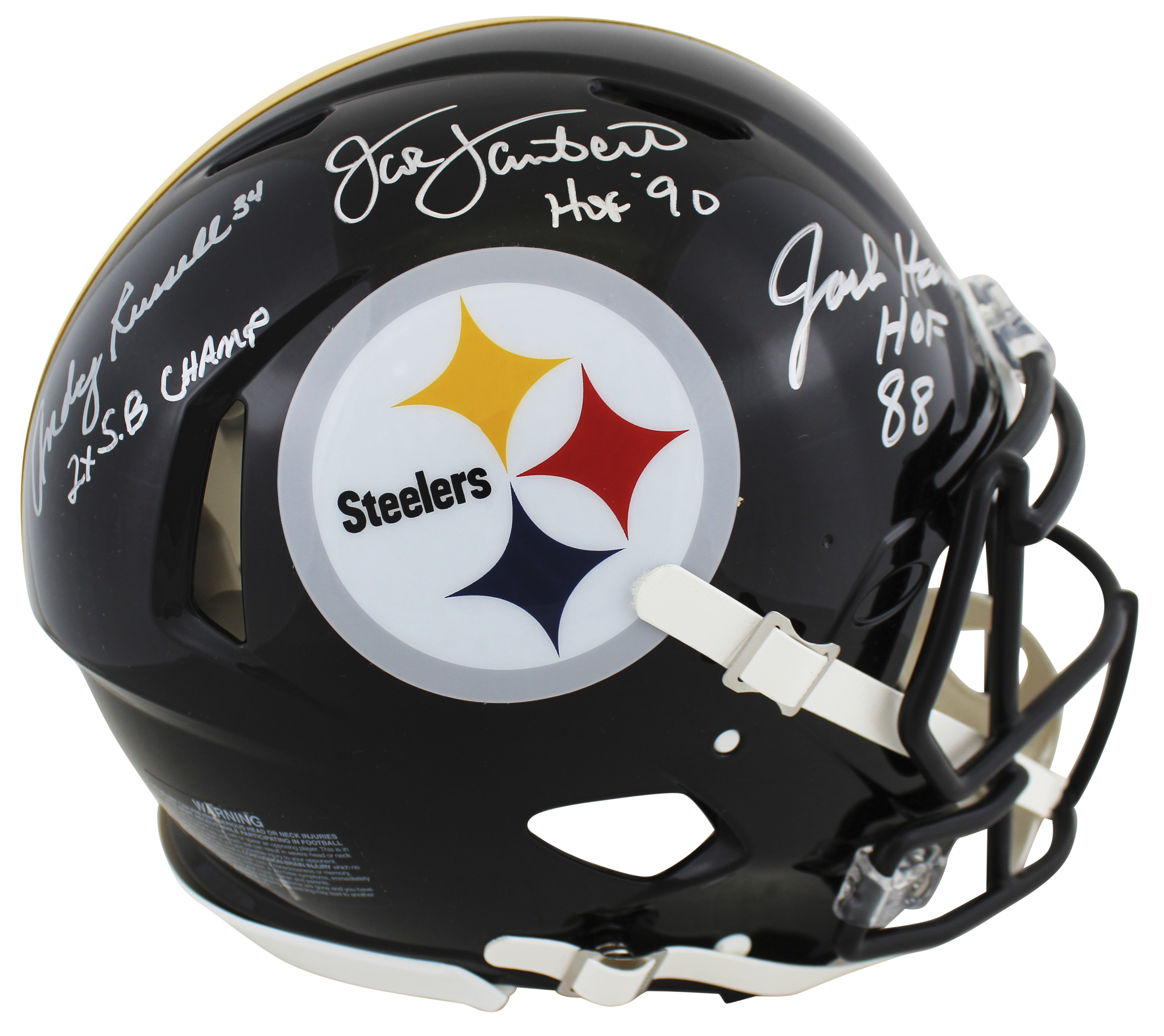 Steelers LBs (3) Ham, Lambert & Russell Signed F/S Speed Proline Helmet BAS Wit