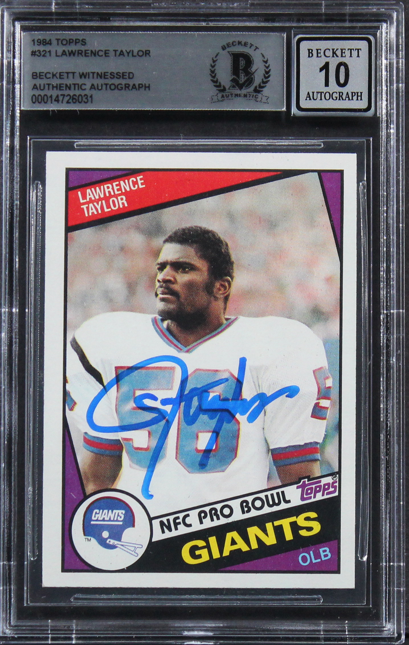 Giants Lawrence Taylor Signed 1984 Topps #321 Card Auto 10! BAS Slabbed