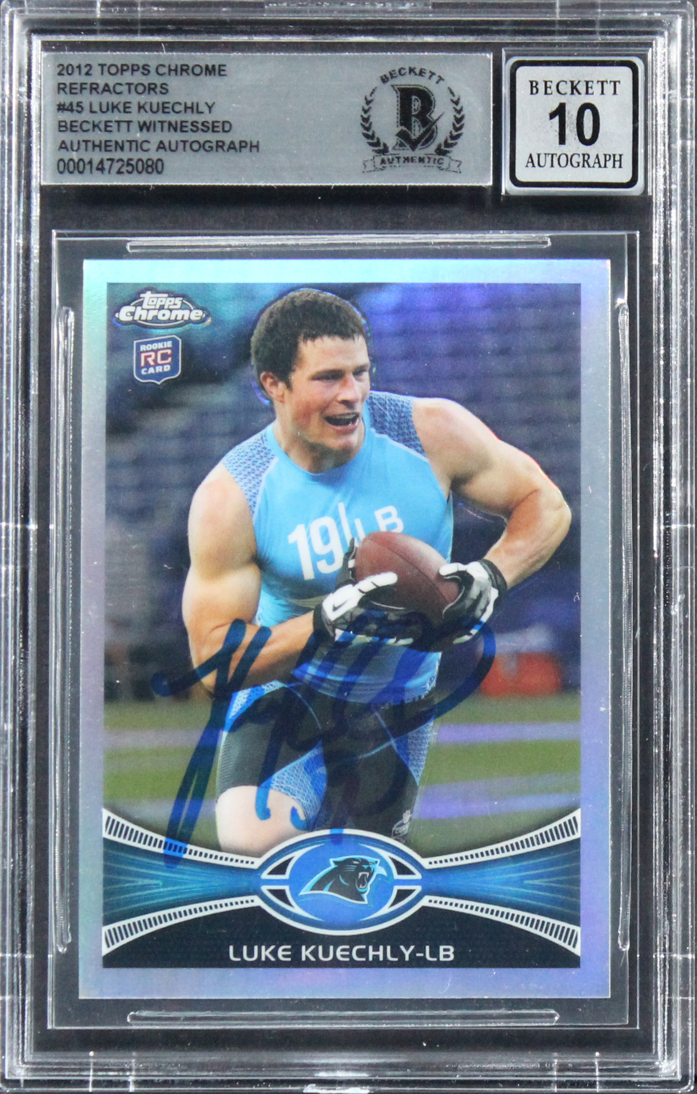 Luke Kuechly Signed 2012 Topps Chrome Refractors #45 RC Card Auto 10! BAS Slab