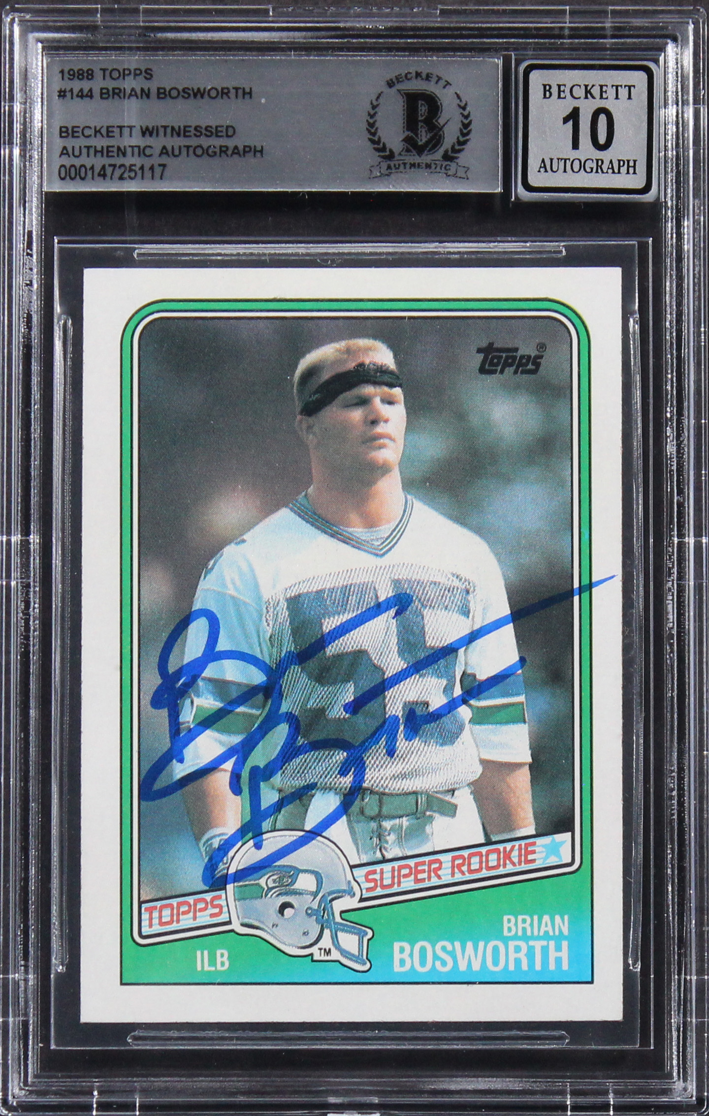 Seahawks Brian Bosworth Signed 1988 Topps #144 Rookie Card Auto 10! BAS Slabbed