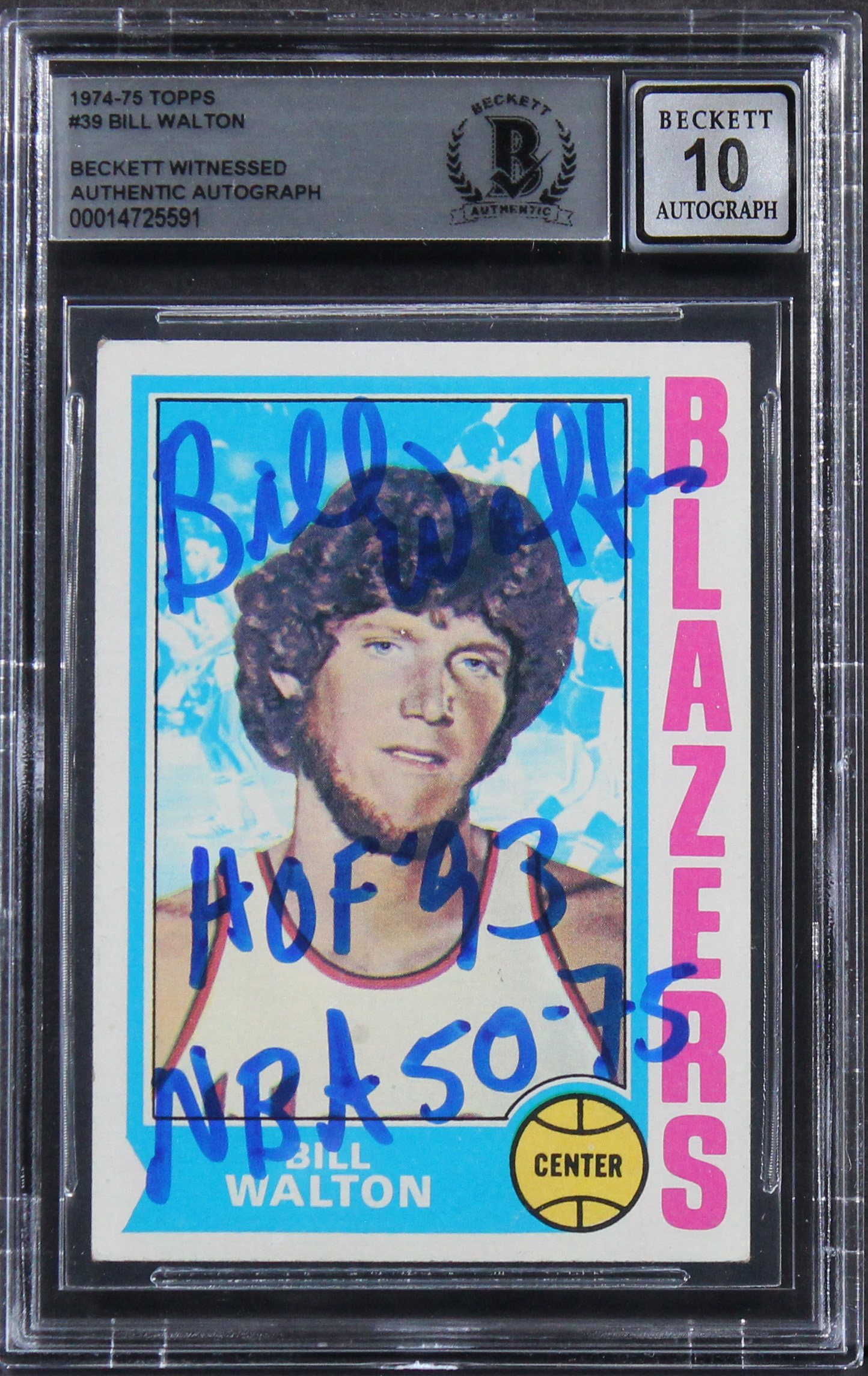 Blazers Bill Walton "2x Insc" Signed 1974 Topps #39 Rookie Card Auto 10 BAS Slab