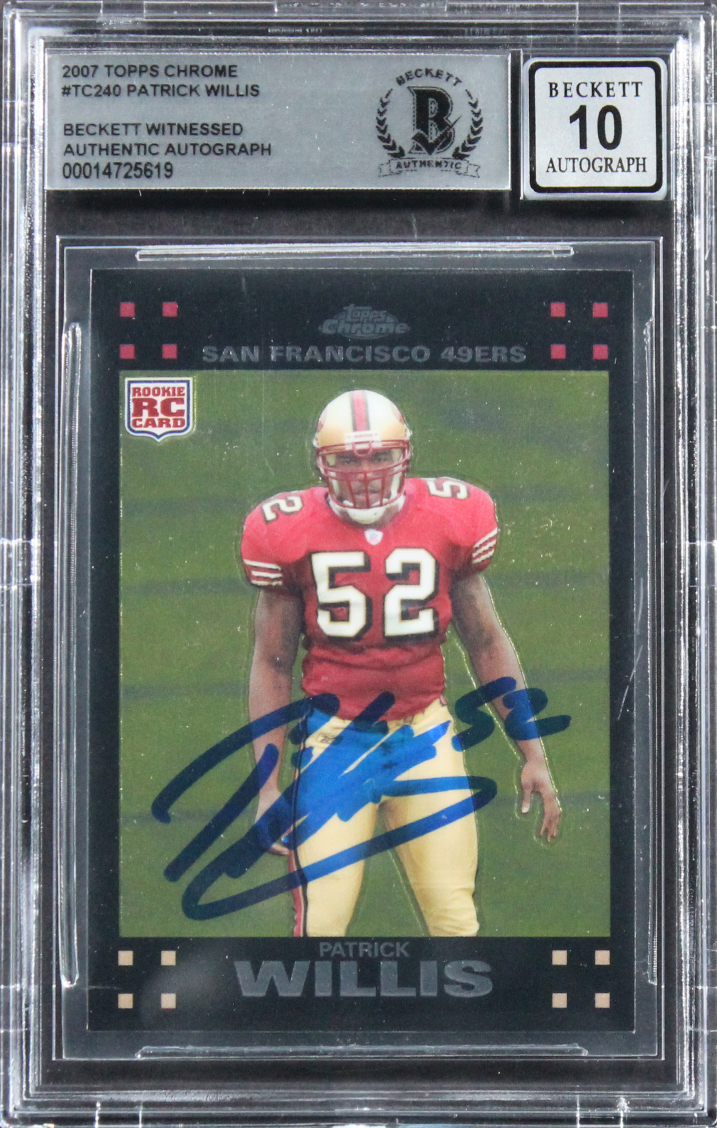 Patrick Willis Signed 2007 Topps Chrome Refractors #TC240 Card Auto 10 BAS Slab