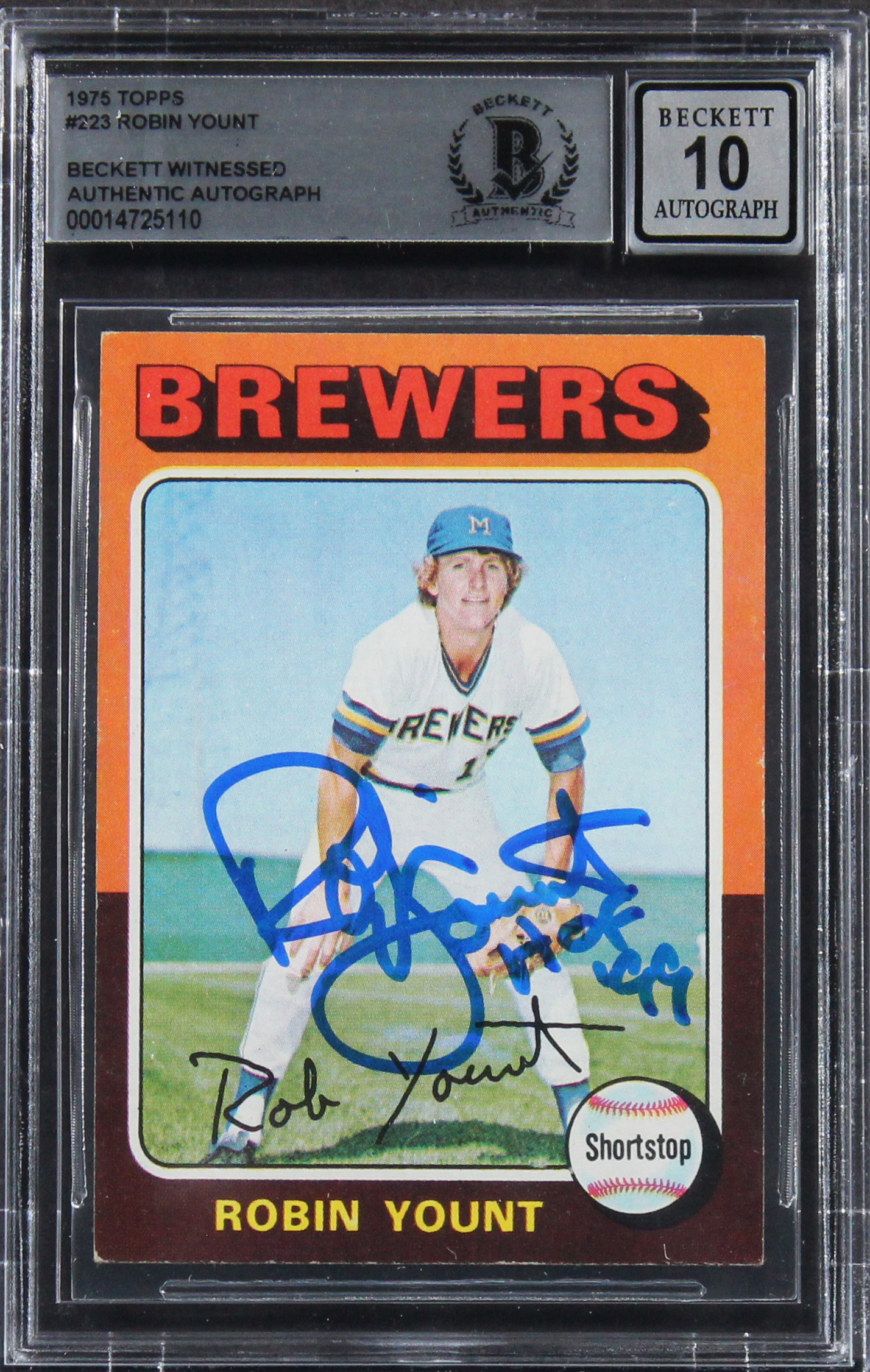 Brewers Robin Yount "HOF 99" Signed 1975 Topps #223 Rookie Card Auto 10 BAS Slab
