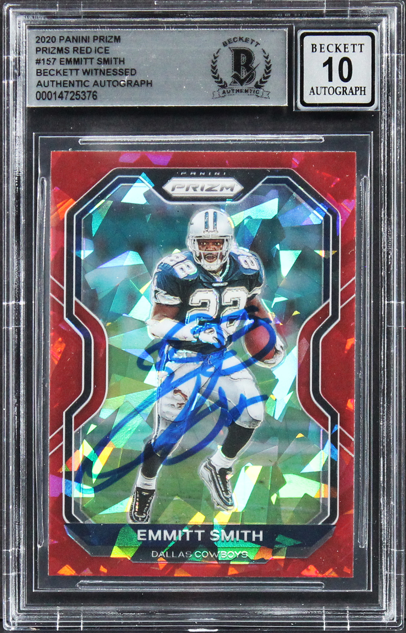 Cowboys Emmitt Smith Signed 2020 Panini Prizm Red Ice #157 Card Auto 10 BAS Slab
