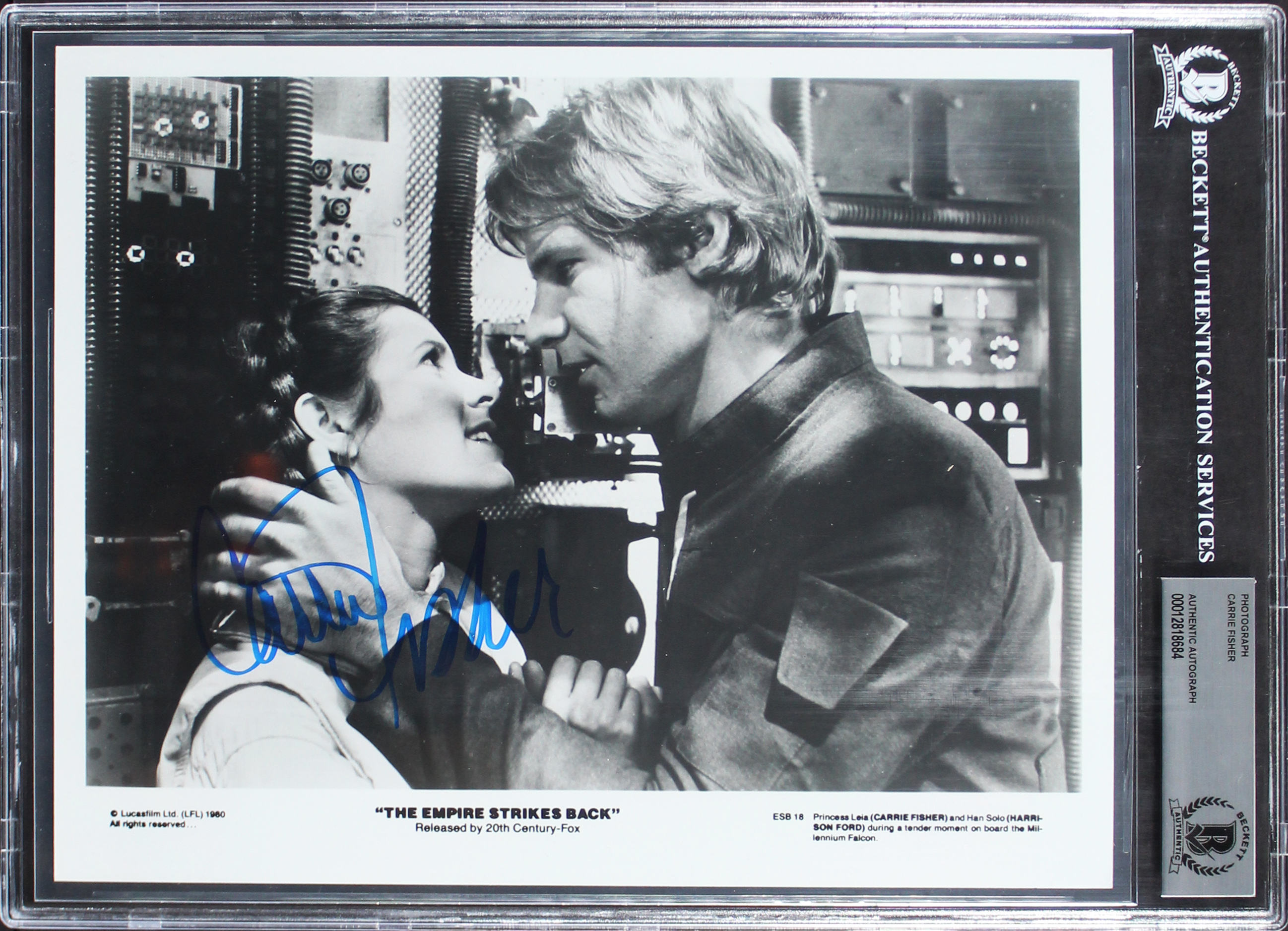 Carrie Fisher Star Wars Empire Strikes Back Signed 8x10 B&W Photo BAS Slabbed