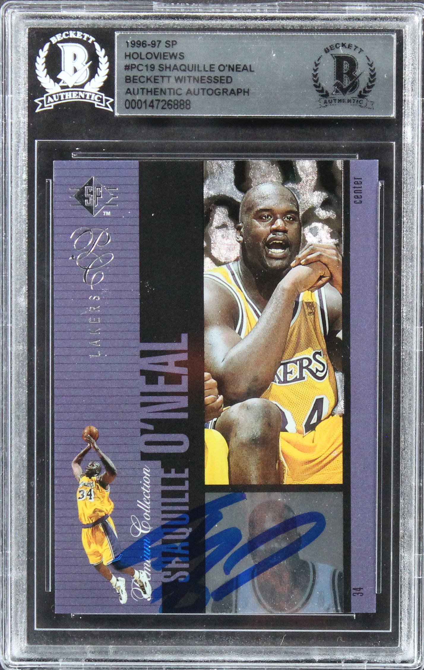 Lakers Shaquille O'Neal Signed 1996 SP Holoviews #PC19 Card BAS Slabbed