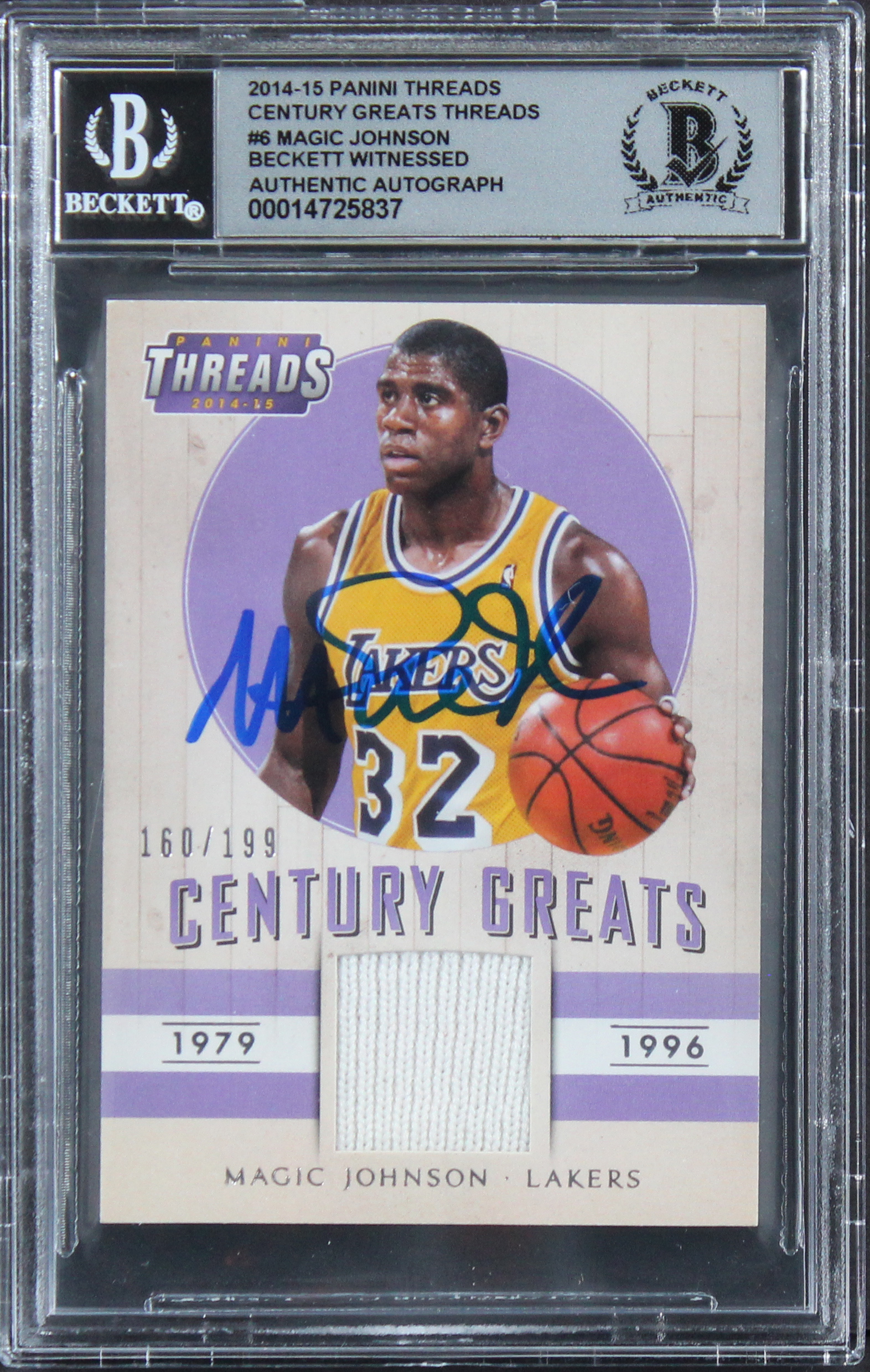 Magic Johnson Signed 2014 Panini Threads Century Greats #6 Card Auto 10 BAS Slab