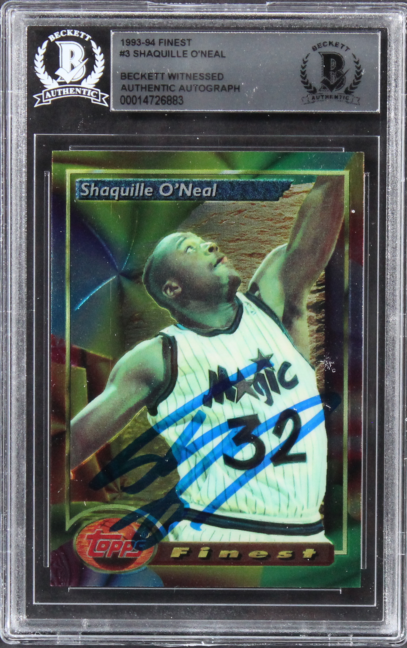 Lakers Shaquille O'Neal Authentic Signed 1993 Finest #3 Card BAS Slabbed