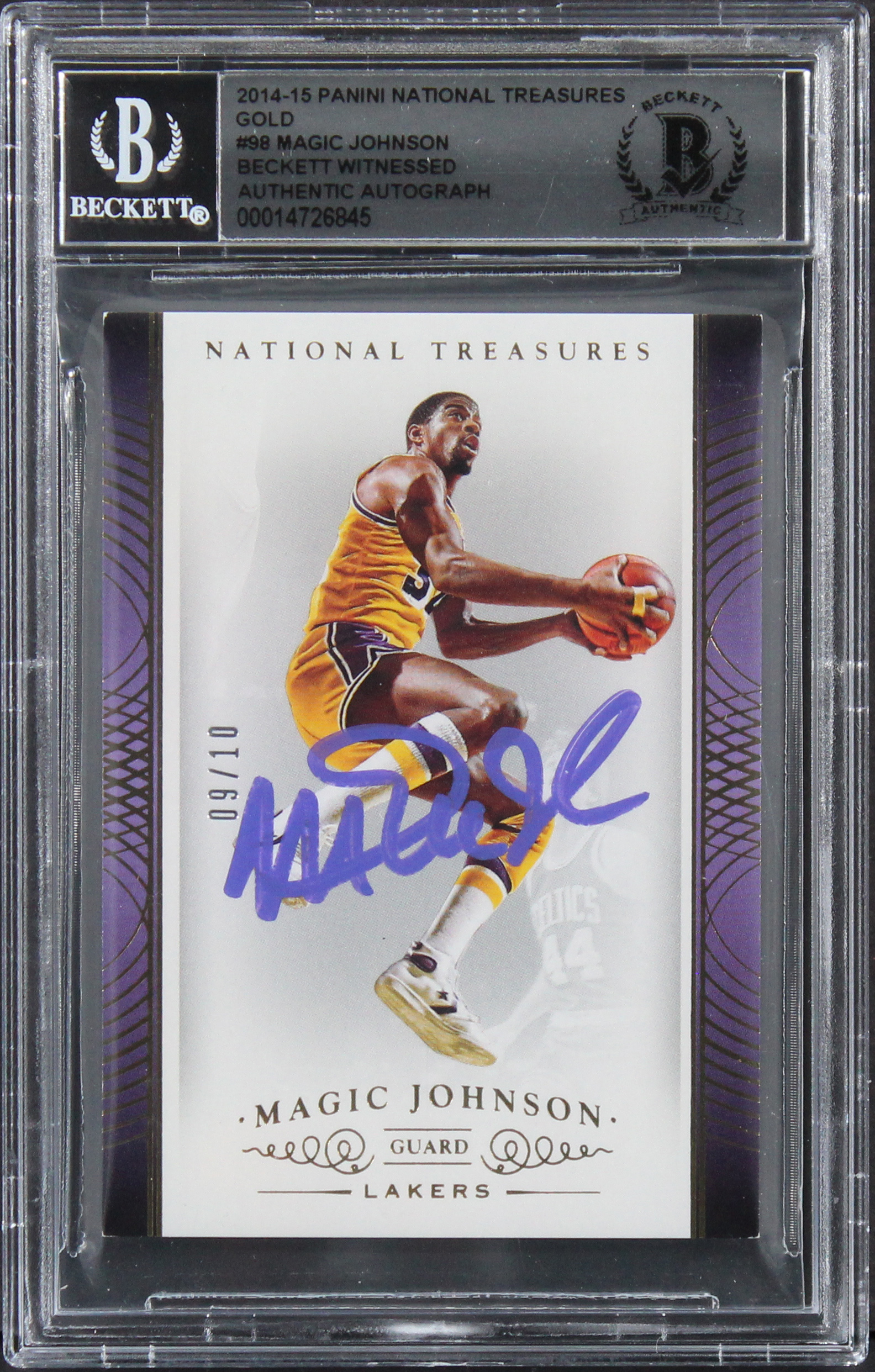 Magic Johnson Signed 2014 Panini National Treasures Gold #98 Card BAS Slabbed