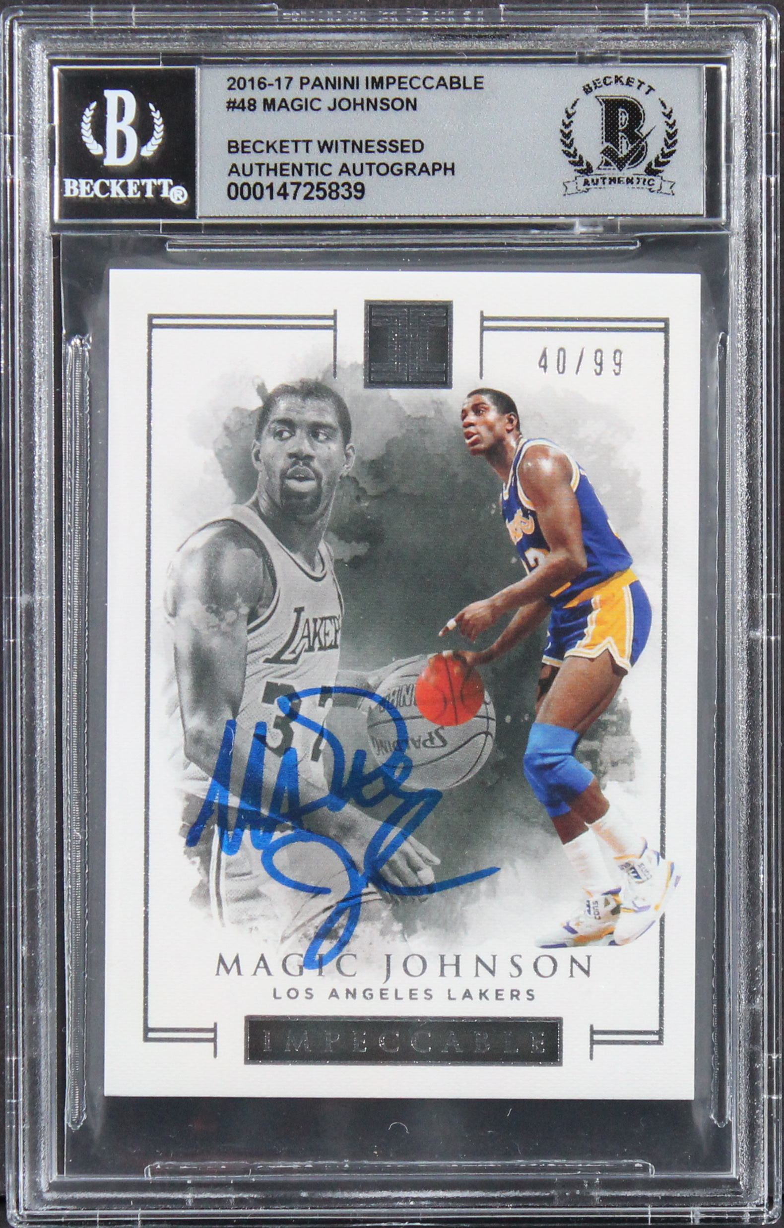 Magic Johnson Signed 2016 Panini Impeccable #48 #40/99 Card Auto 10! BAS Slabbed