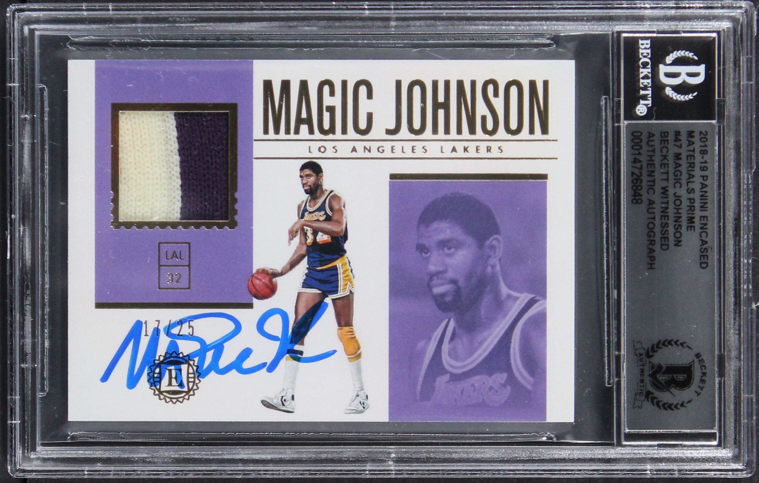 Magic Johnson Signed 2018 Panini Encased Materials Prime #47 17/25 Card BAS Slab