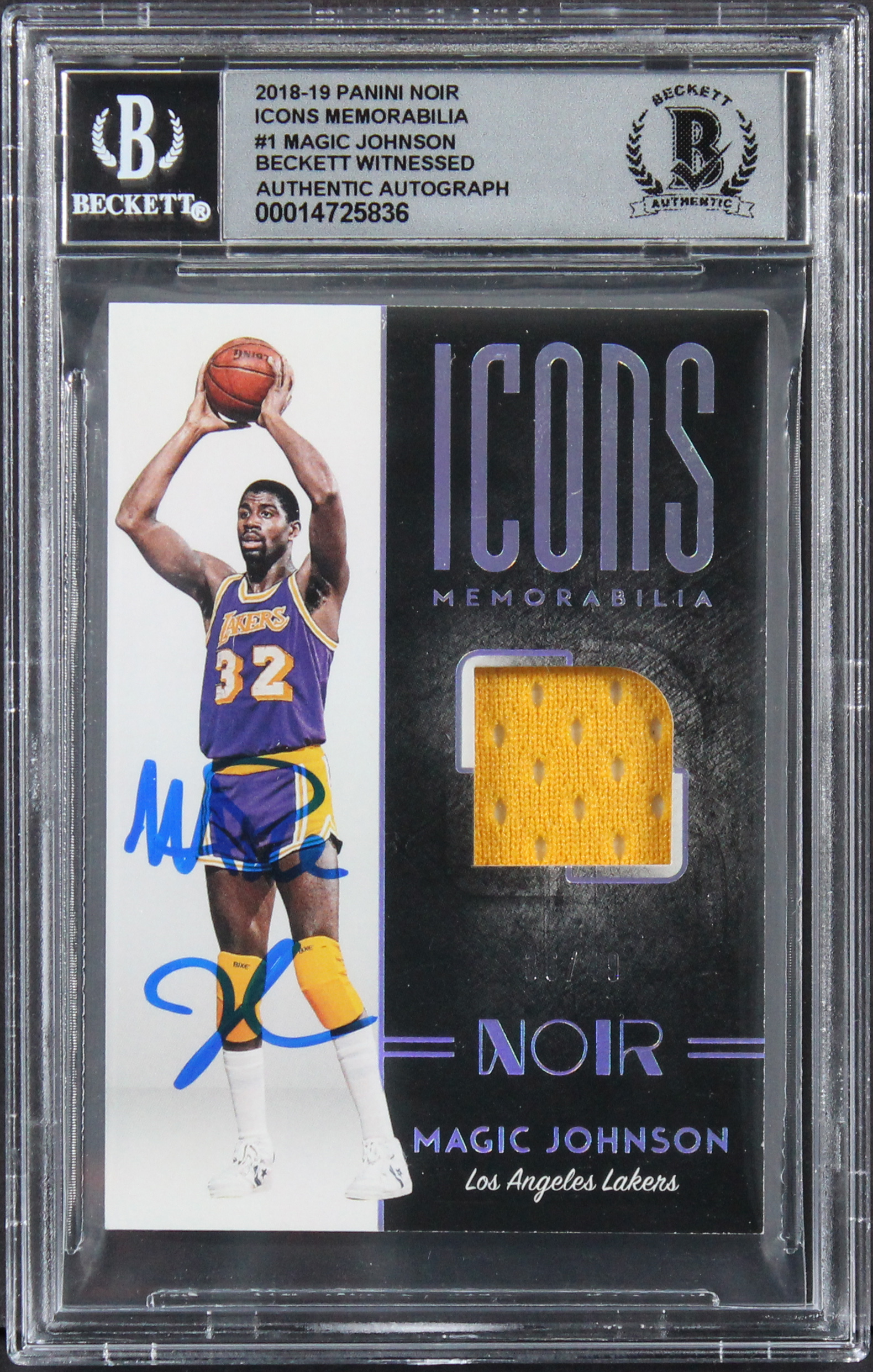Magic Johnson Signed 2018 Panini Noir Icons Memorabilia #1 Card Auto 10 BAS Slab