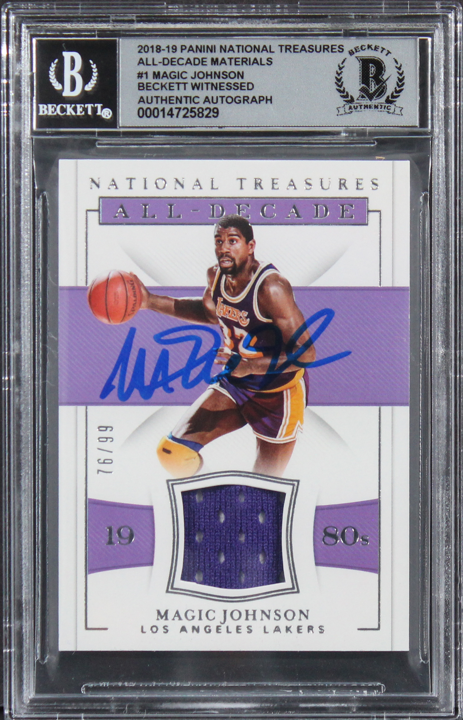 Magic Johnson Signed 2018 Panini Nat Treasures #1 #76/99 Card Auto 10! BAS Slab