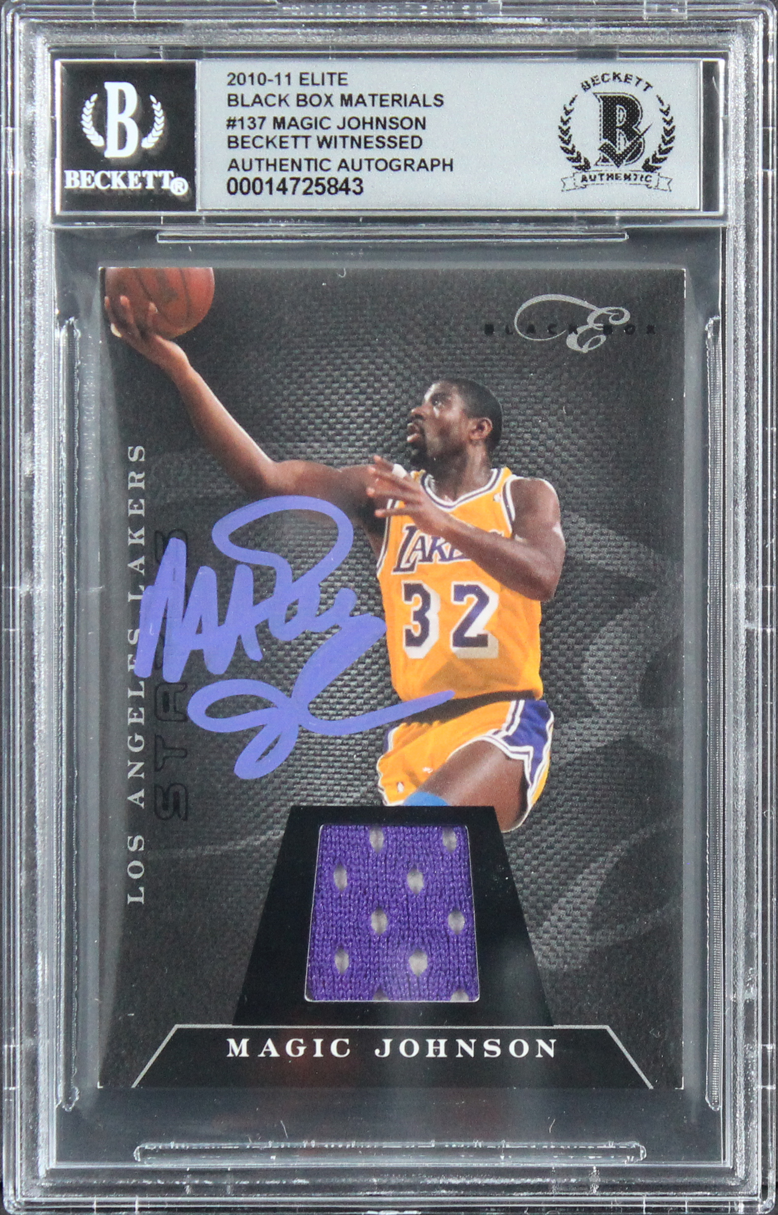 Magic Johnson Signed 2010 Elite Black Box Materials #137 Card Auto 10! BAS Slab