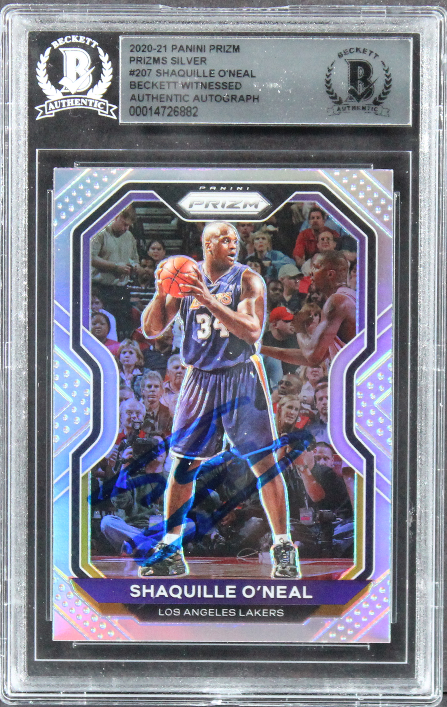 Lakers Shaquille O'Neal Signed 2020 Panini Prizm Silver #207 Card BAS Slabbed