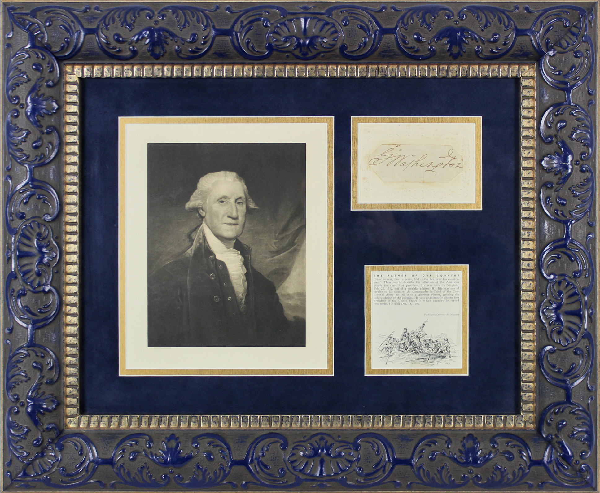 George Washington Authentic Signed 1.4x3.5 Framed Cut Signature BAS #A78926