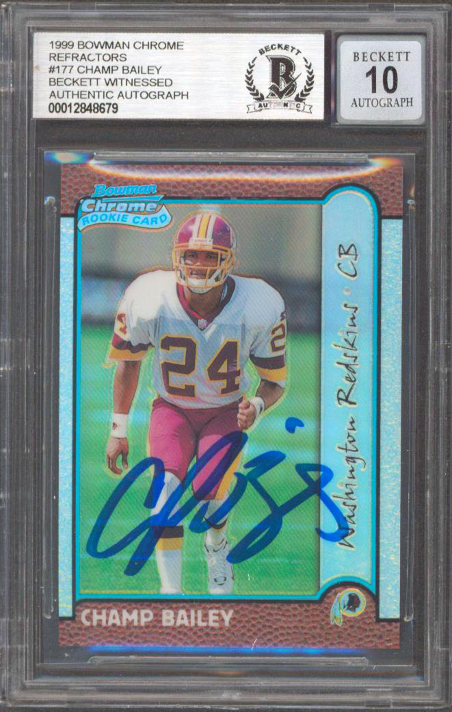 Champ Bailey Signed 1999 Bowman Chrome Refractors #177 RC Card Auto 10! BAS Slab