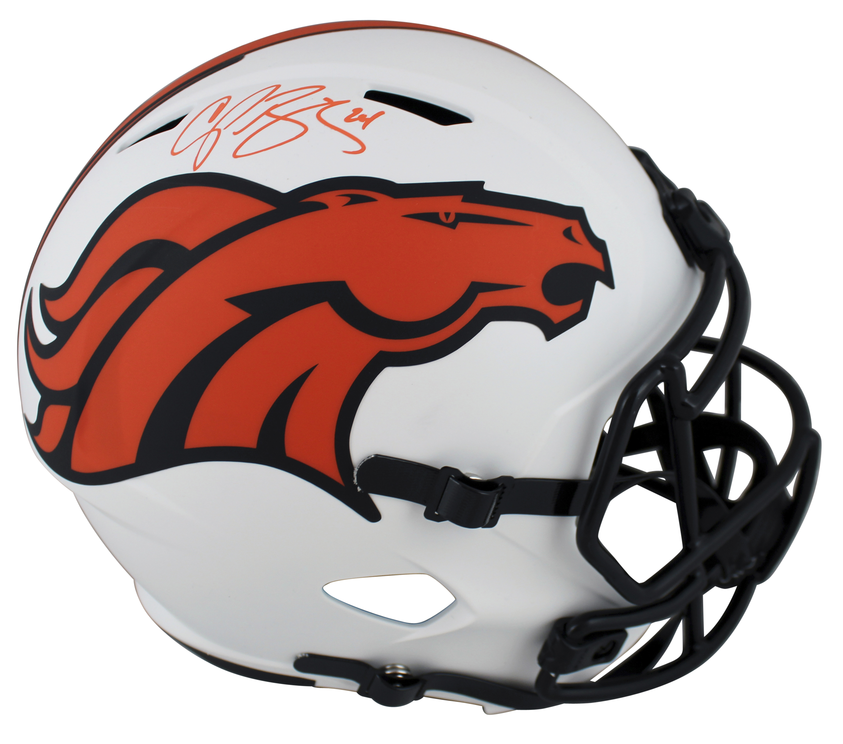 Broncos Champ Bailey Signed Lunar Full Size Speed Rep Helmet BAS Witnessed
