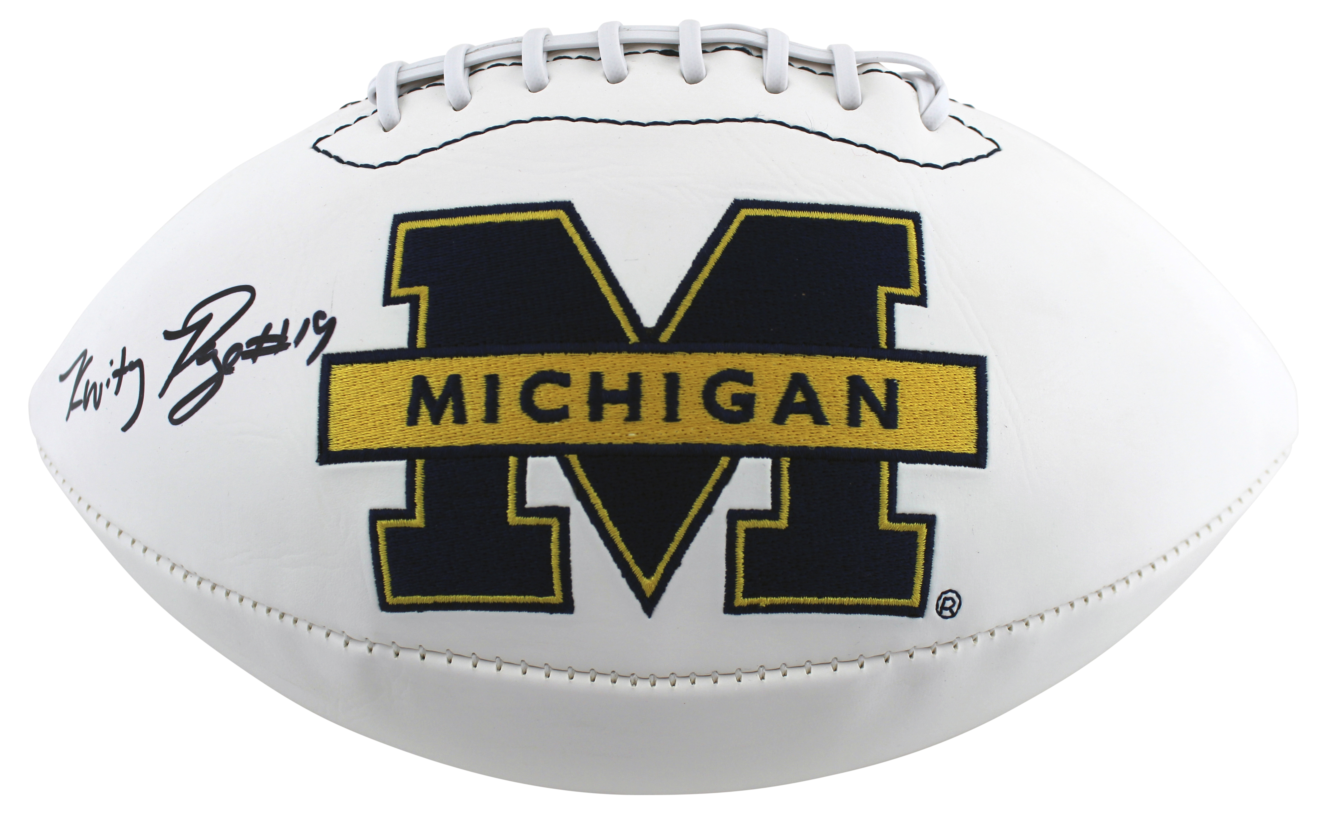 Michigan Kwity Paye Authentic Signed White Panel Logo Football BAS Witnessed