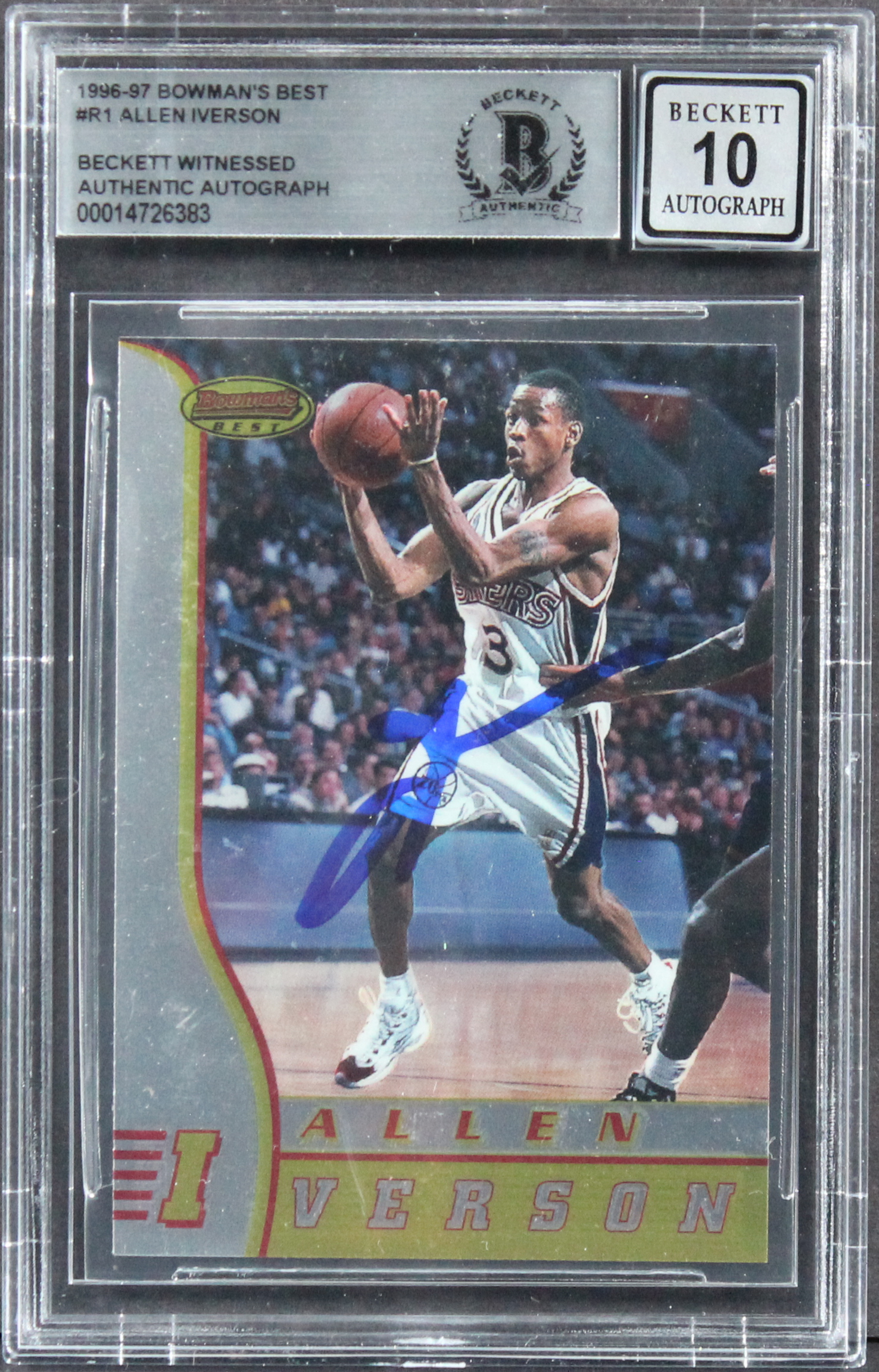 76ers Allen Iverson Signed 1996 Bowman's Best #R1 Card Auto 10! BAS Slabbed