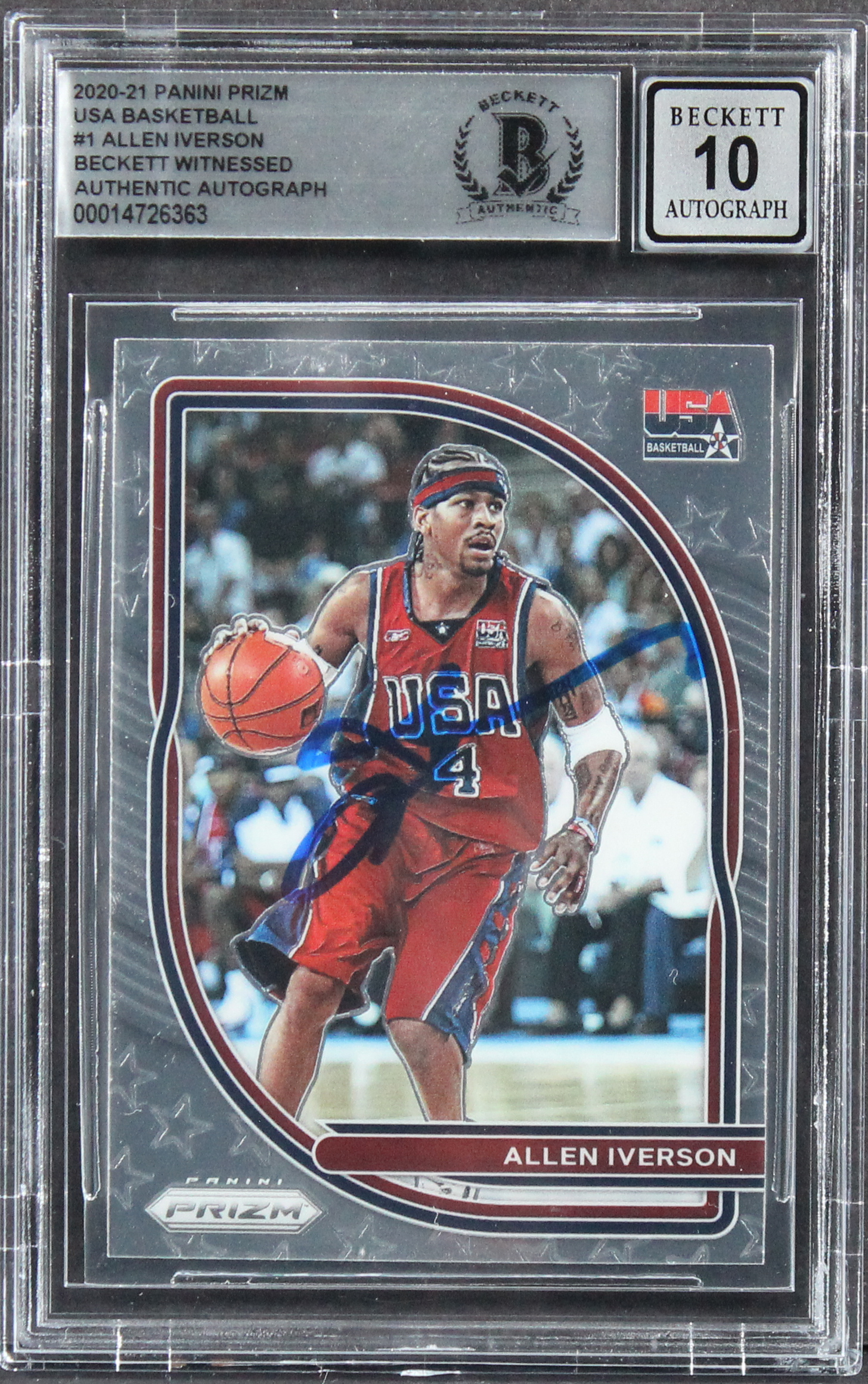 Allen Iverson Signed 2020 Panini Prizm USA Basketball #1 Card Auto 10! BAS Slab