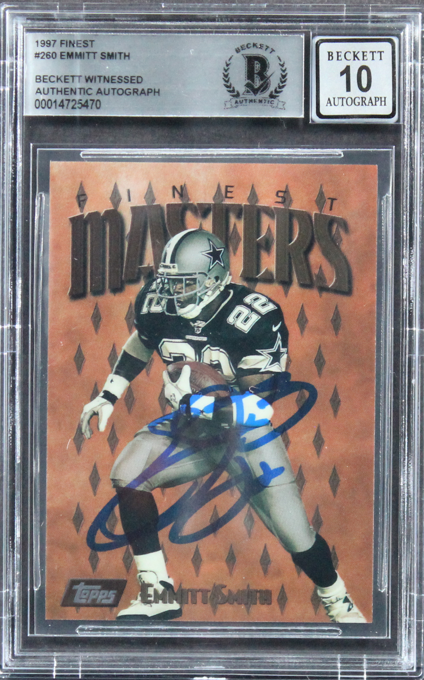 Cowboys Emmitt Smith Authentic Signed 1997 Finest #260 Card Auto 10! BAS Slabbed