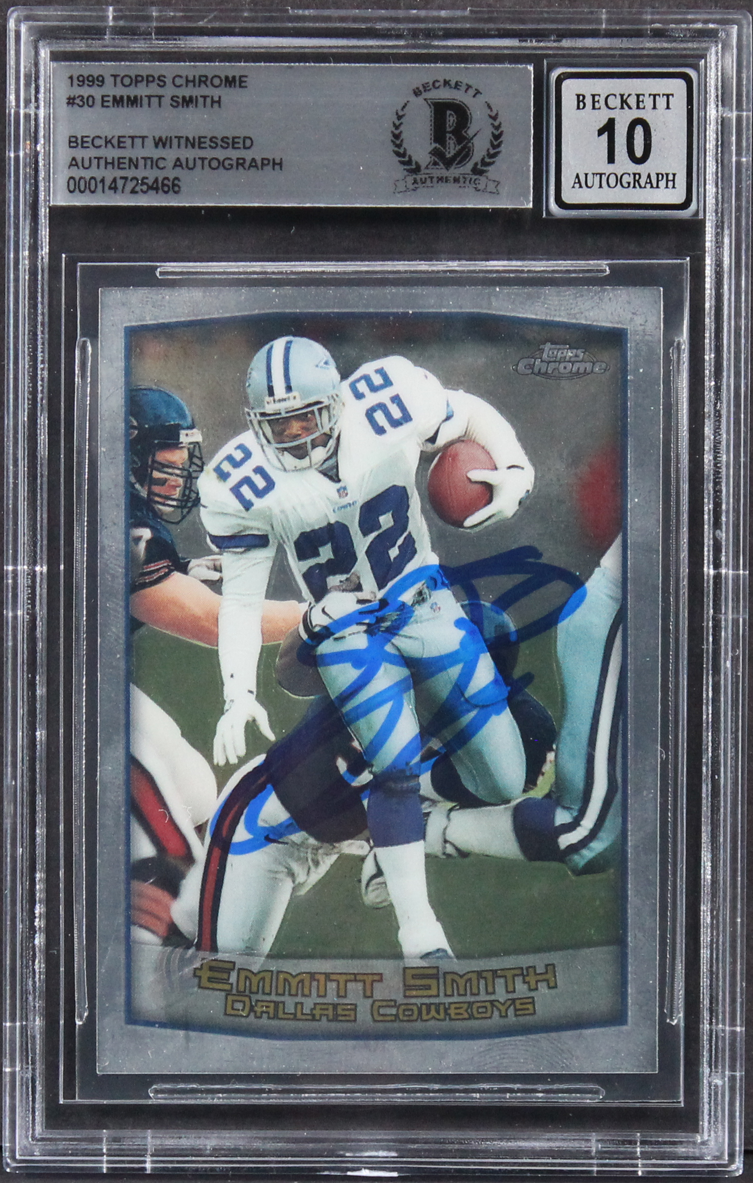 Cowboys Emmitt Smith Signed 1999 Topps Chrome #30 Card Auto 10! BAS Slabbed