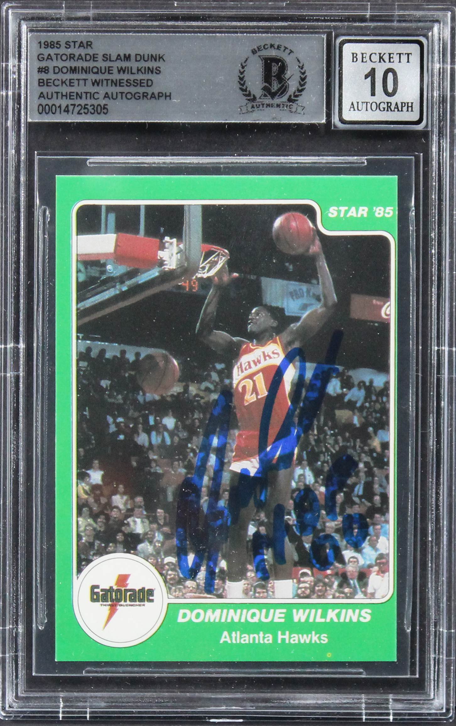 Dominique Wilkins "HOF 90" Signed 1985 Star Gatorade SD #8 Card Auto 10 BAS Slab