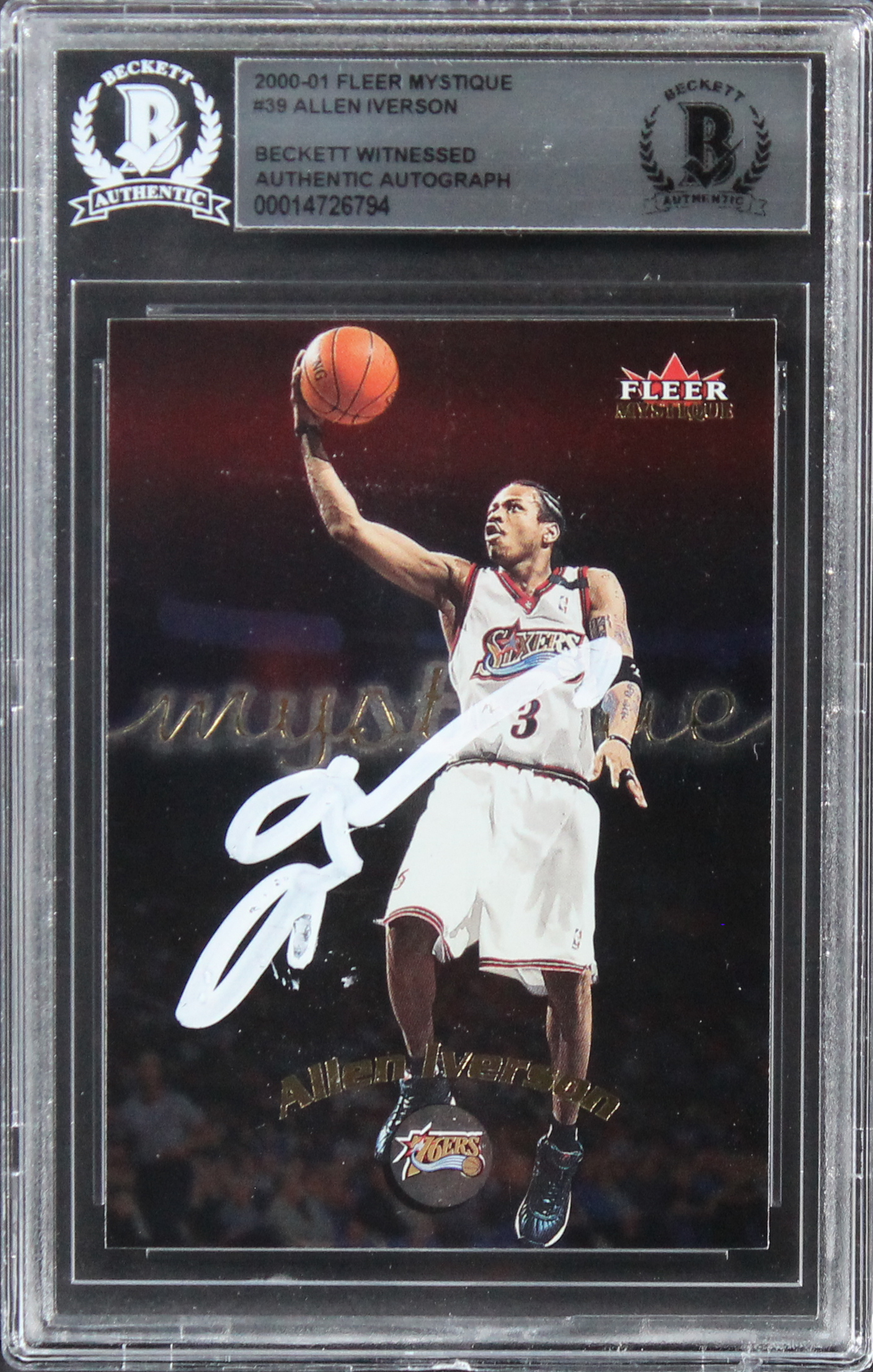 76ers Allen Iverson Authentic Signed 2000 Fleer Mystique #39 Card BAS Slabbed