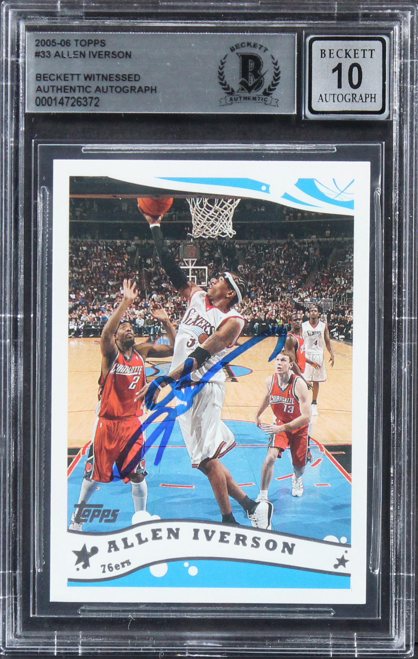 76ers Allen Iverson Signed 2005 Topps #33 Card Auto Graded Gem Mint 10! BAS Slab