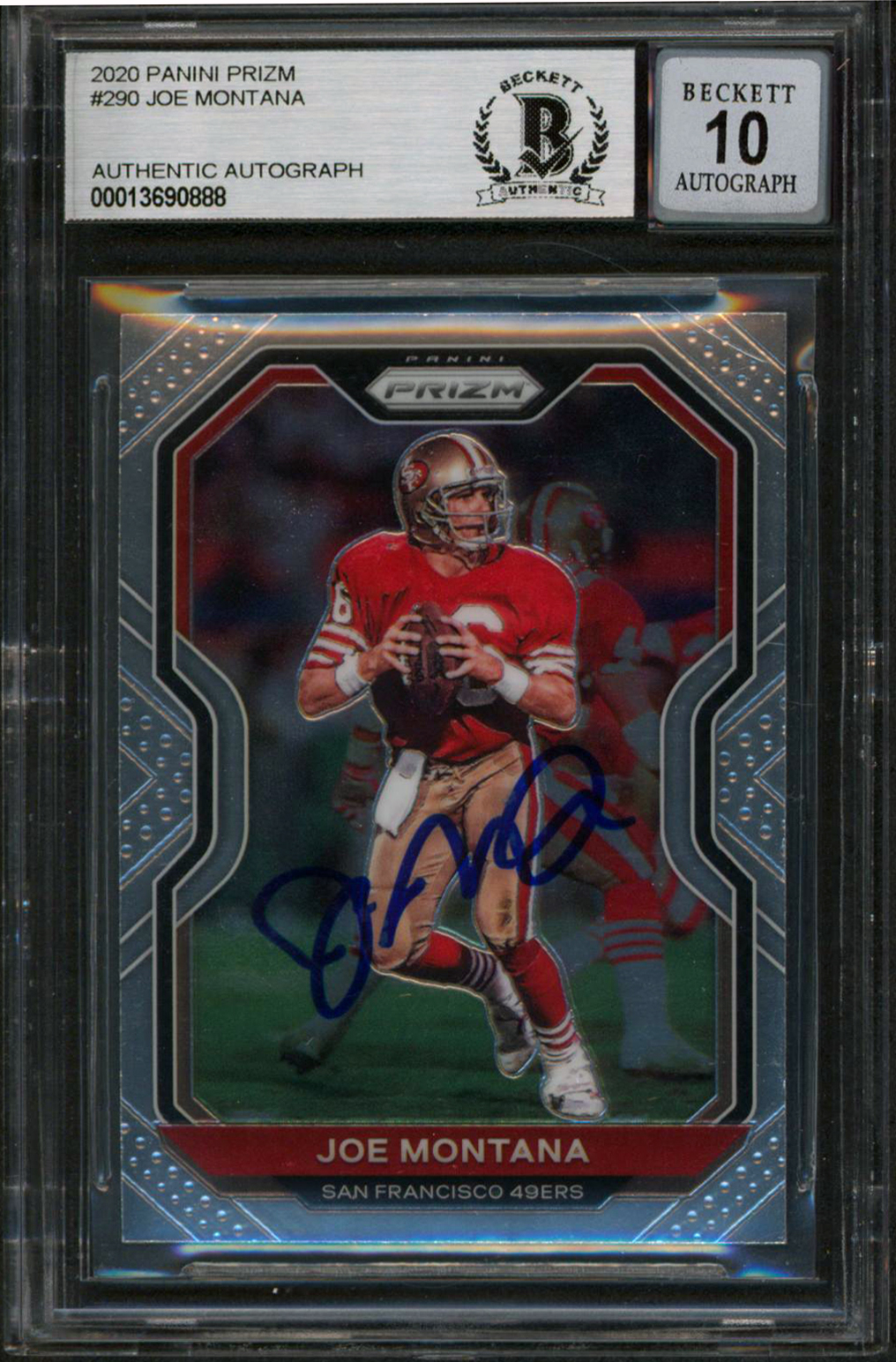 49ers Joe Montana Signed 2020 Panini Prizm #290 Card Auto Gem Mint 10! BAS Slab