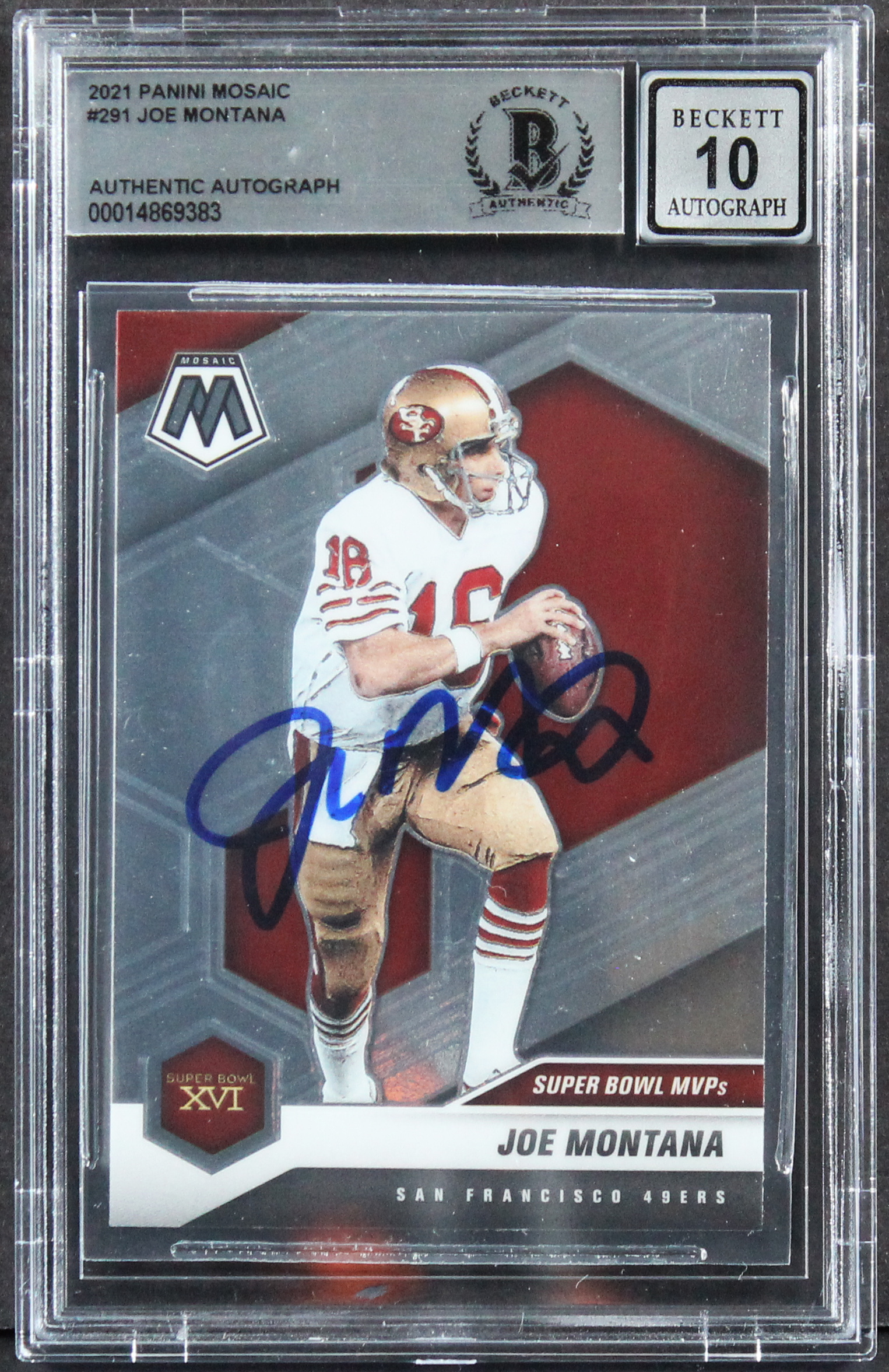49ers Joe Montana Signed 2021 Panini Mosaic #291 Card Auto 10! BAS Slabbed