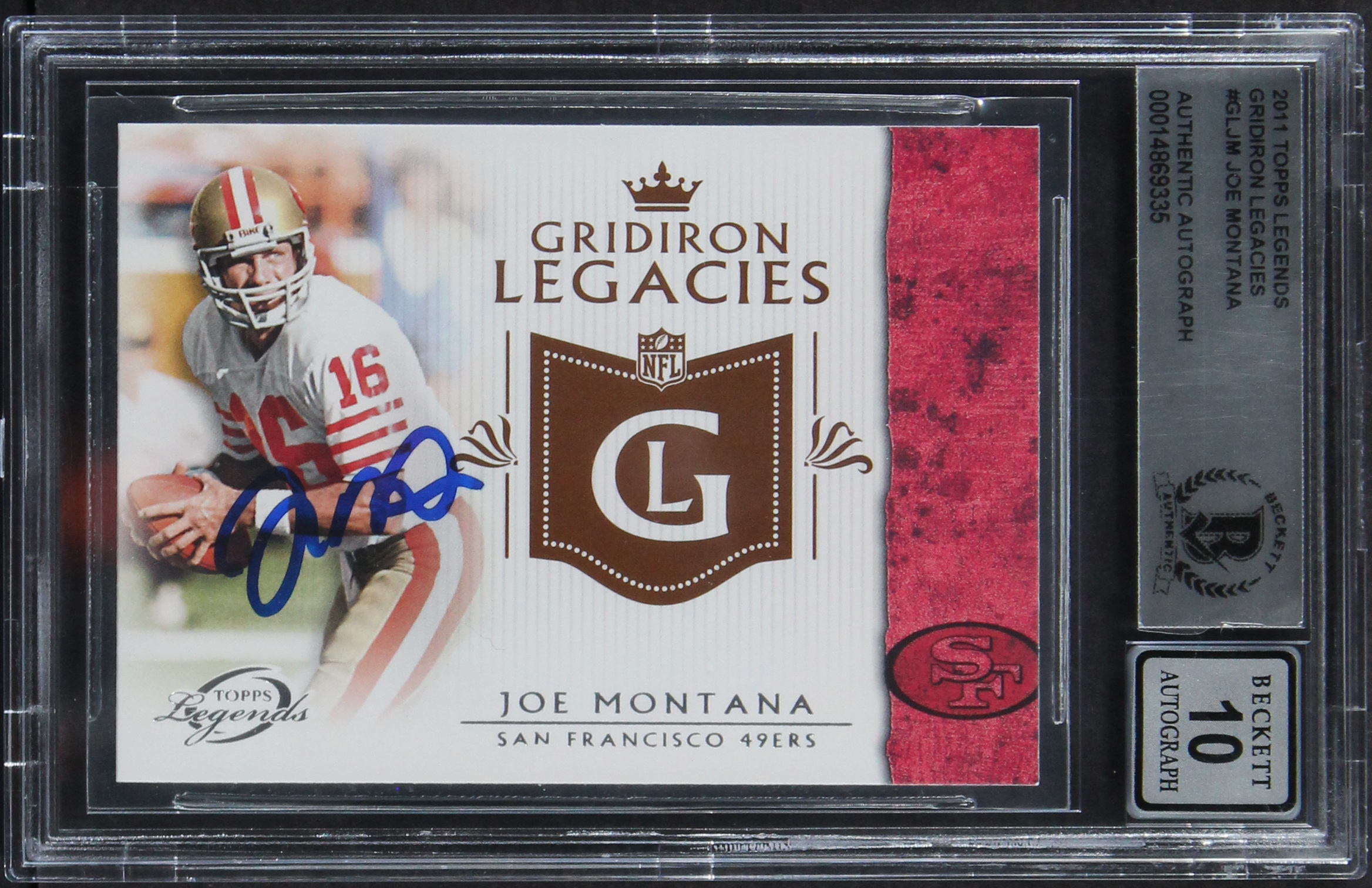 49ers Joe Montana Signed 2011 Topps Legends GL #GLJM Card Auto 10! BAS Slabbed