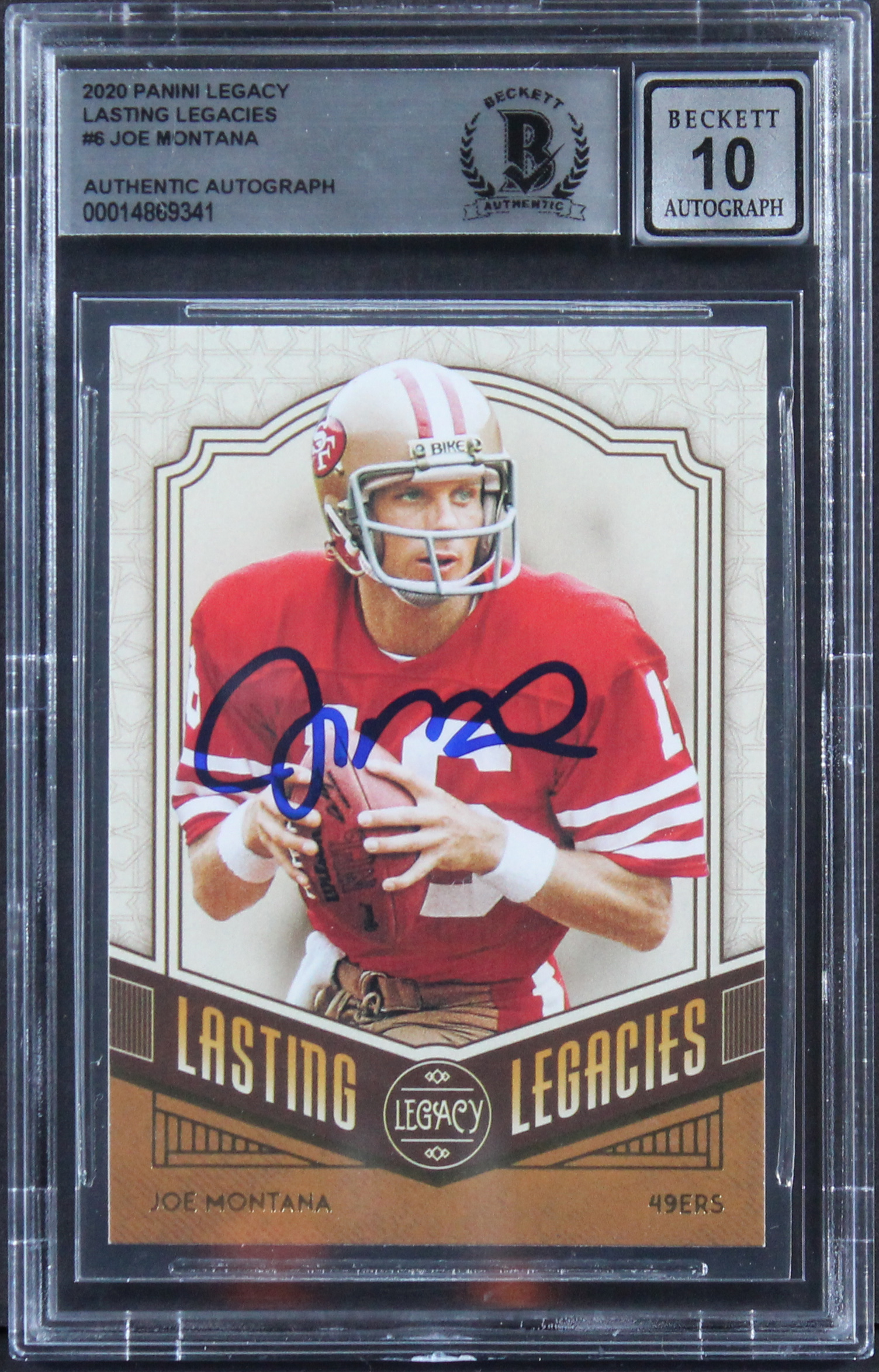 Joe Montana Signed 2020 Panini Legacy Lasting Legacies #6 Card Auto 10 BAS Slab