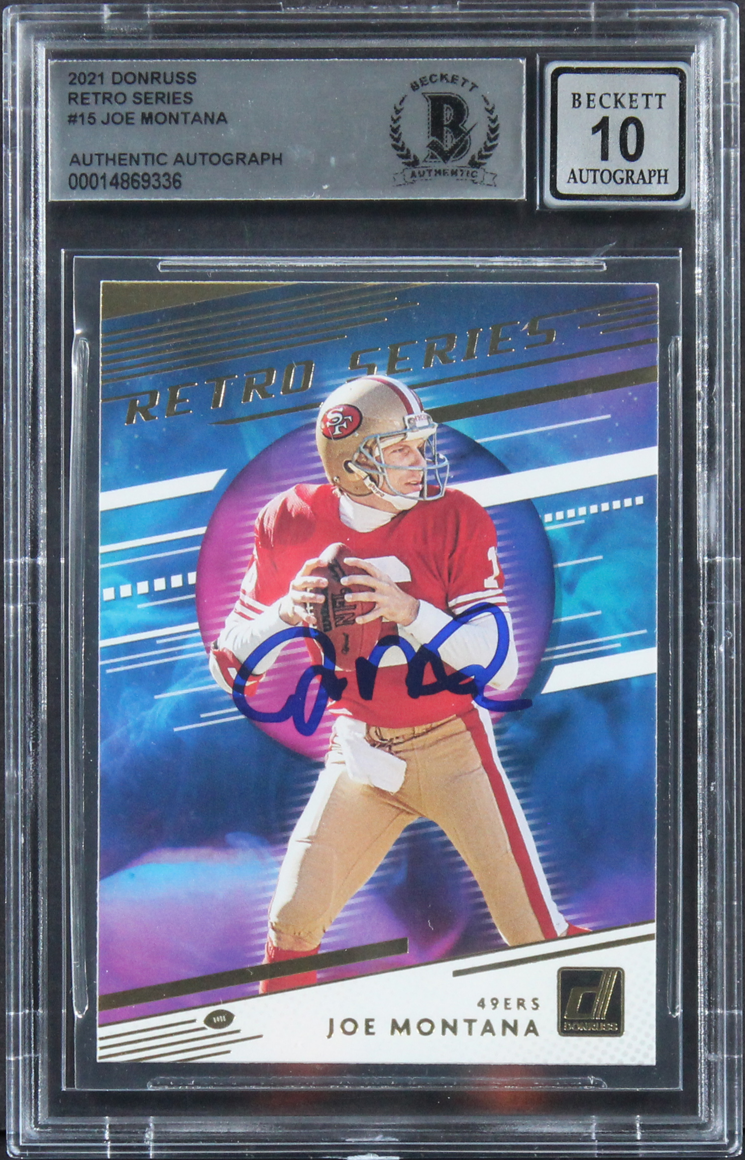 49ers Joe Montana Signed 2021 Donruss Retro Series #15 Card Auto 10! BAS Slabbed