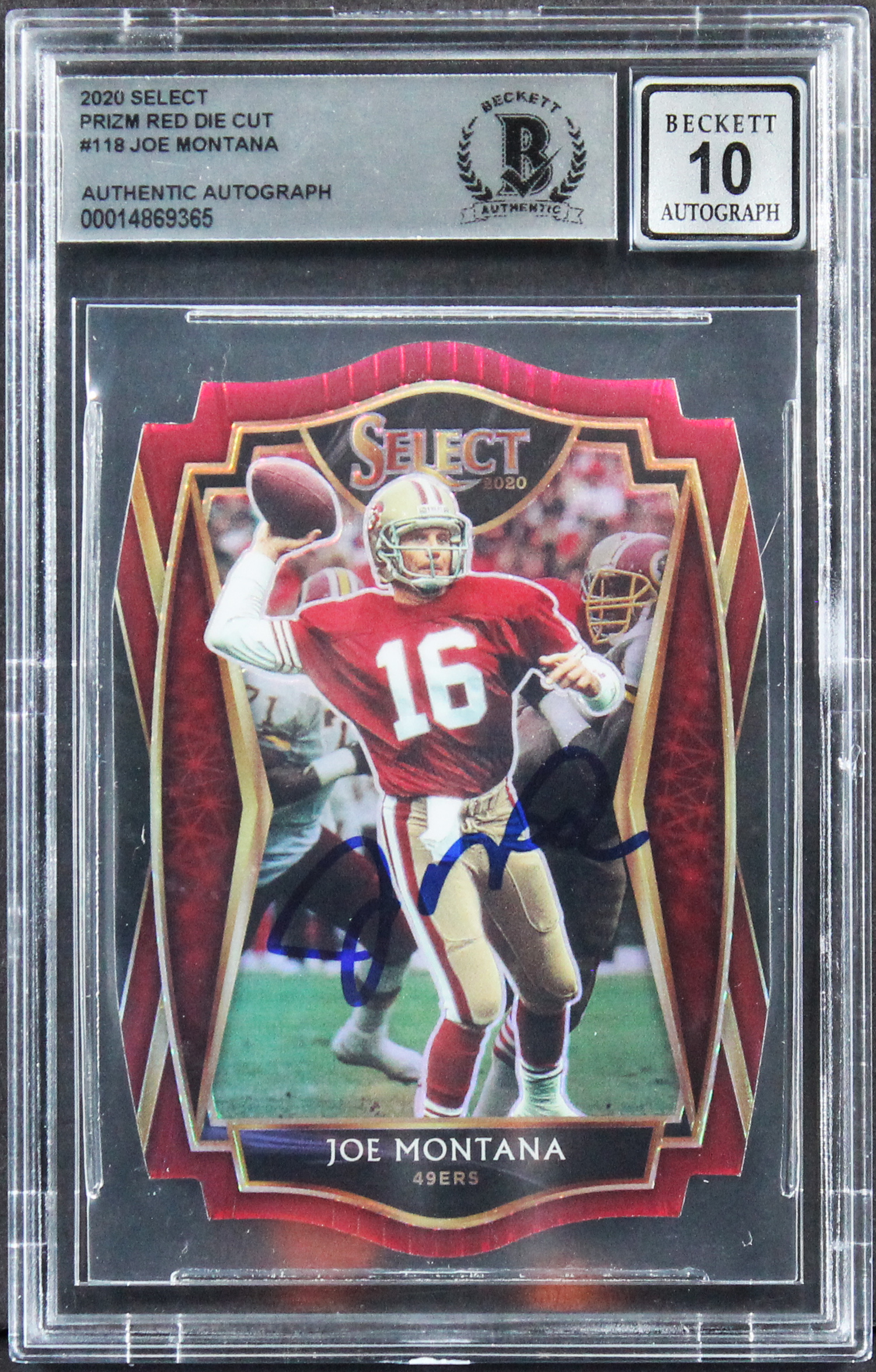 49ers Joe Montana Signed 2020 Select Prizm Red DC #118 Card Auto 10! BAS Slabbed