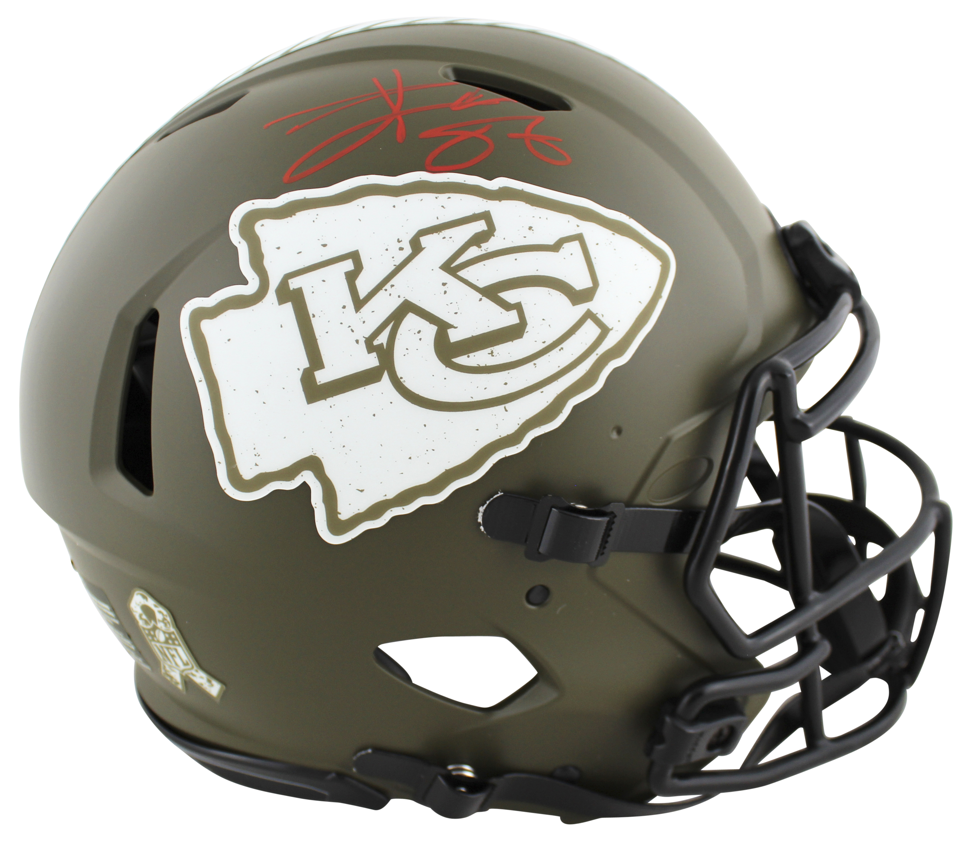 Chiefs Travis Kelce Signed Salute To Service Full Size Speed Rep Helmet BAS Wit