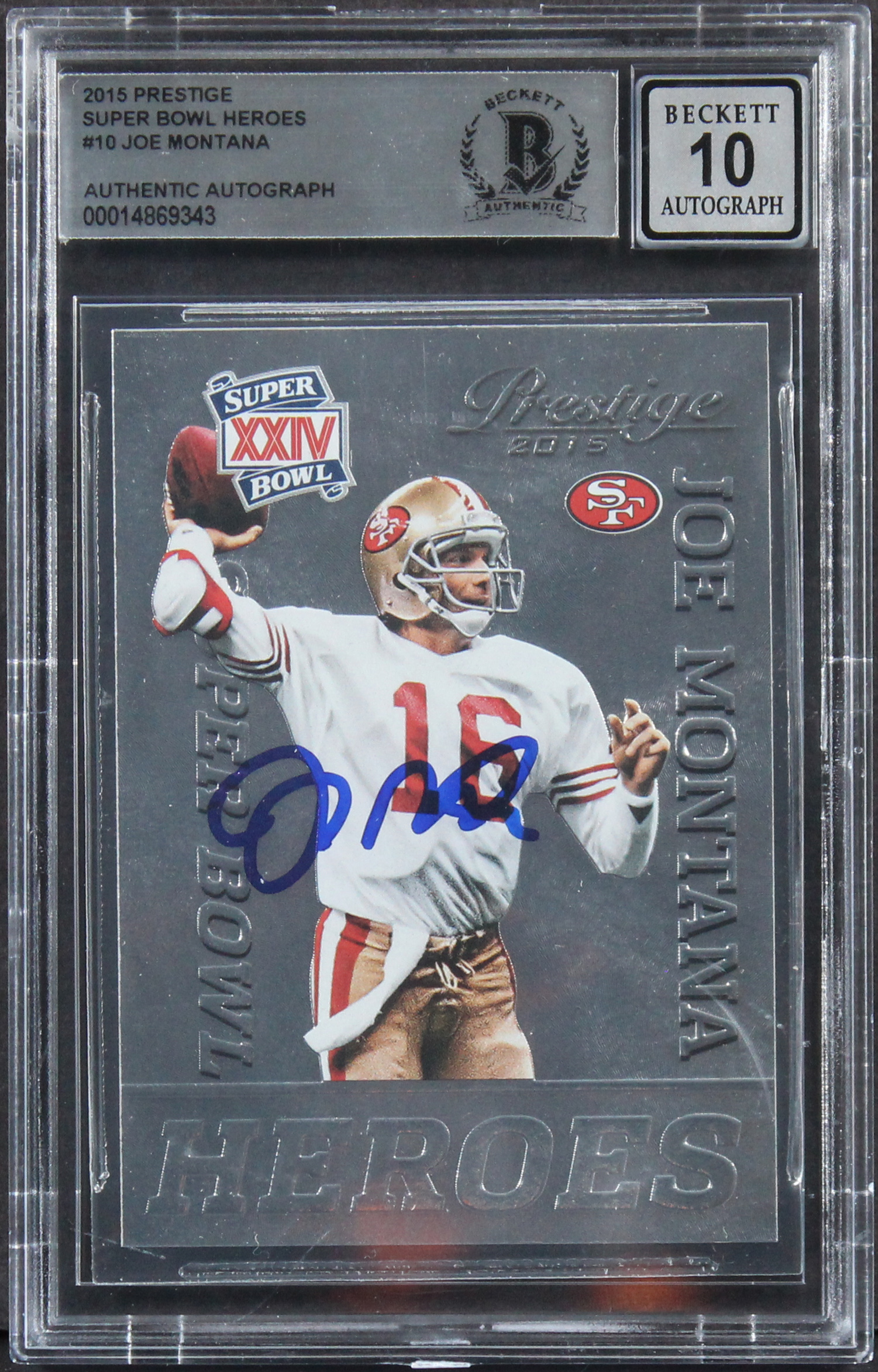 Joe Montana Signed 2015 Prestige Super Bowl Heroes #10 Card Auto 10! BAS Slabbed