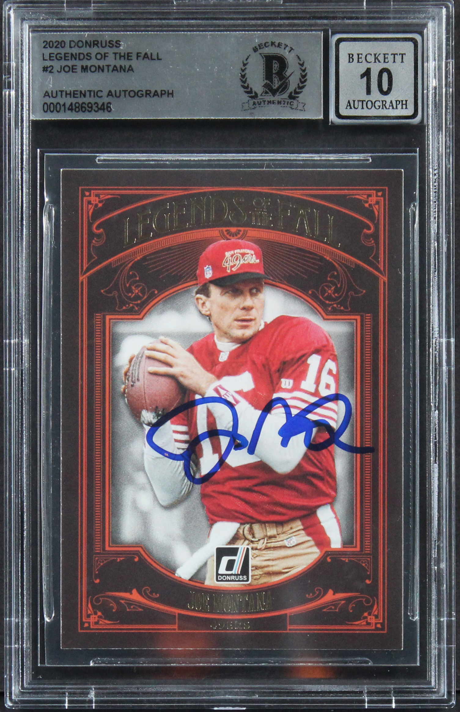Joe Montana Signed 2020 Donruss Legends Of The Fall #2 Card Auto 10! BAS Slabbed