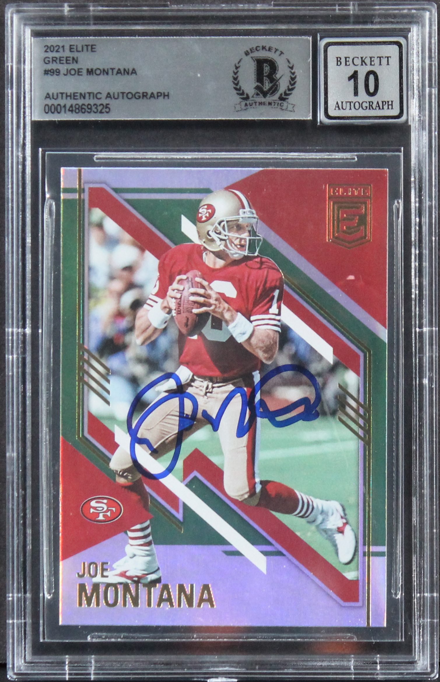 49ers Joe Montana Authentic Signed 2021 Elite Green #99 Card Auto 10 BAS Slabbed